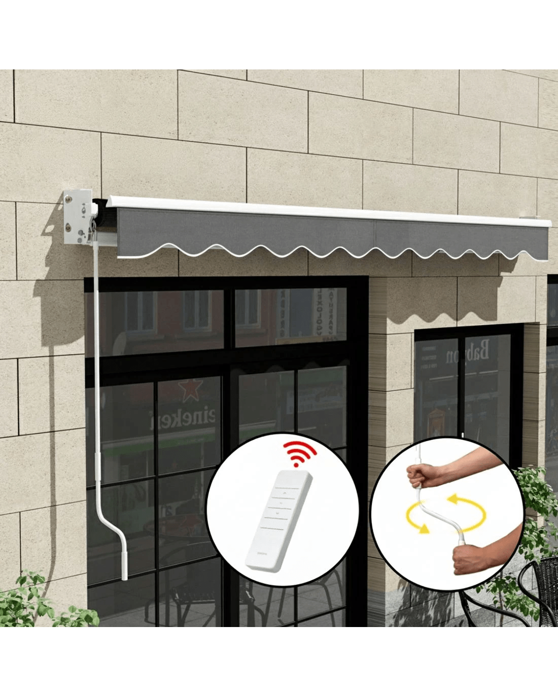 To open or retract the shade, just use the remote control. Or if you prefer to do it manually, a hand crank is provided too. Mounting the frame and shade is also made simple with the included wall brackets. Make it a nice and shady environment with our Auto Folding Arm Awning. Get yours today.