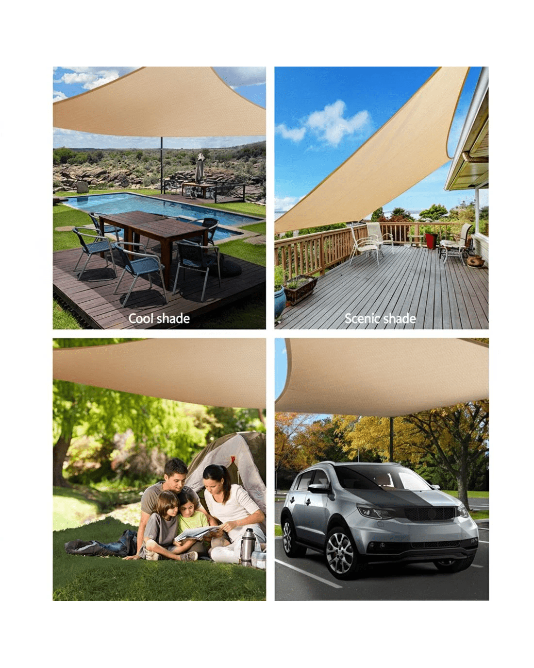 Unlike other shade sails that compromise on quality and cost, our Shade Sail takes shading seriously and will not settle for inferior materials or components. Especially when your safety is one of our major concerns. With many sizes to choose from , there is definitely one right for your deck, patio, pool or entertainment area. Shade Sail on with us.