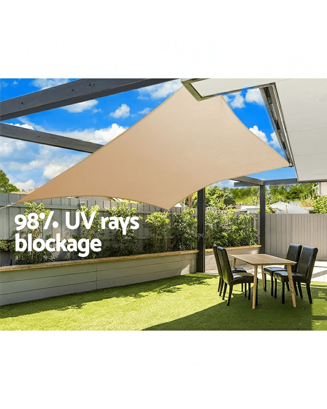 Designed to be a permanent covering, our Shade Sail is made from highly breathable 280g/m2 commercial grade 100% polyethylene fabric. This allows cooling air to pass through and help keep the under shade areas well ventilated. The material also blocks up to 98% of harmful UV rays and is all-weather proof to suit Australian climatic conditions. Plus, the material is further enhanced with Americhem UV-resistant additive from the USA to prolong its UV protection effectiveness.