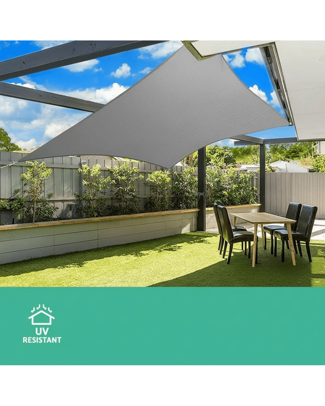 Designed to be a permanent covering, our Shade Sail is made from highly breathable 280g/m2 commercial grade 100% polyethylene fabric. This allows cooling air to pass through and help keep the under shade areas well ventilated. The material also blocks up to 98% of harmful UV rays and is all-weather proof to suit Australian climatic conditions. Plus, the material is further enhanced with Americhem UV-resistant additive from the USA to prolong its UV protection effectiveness.