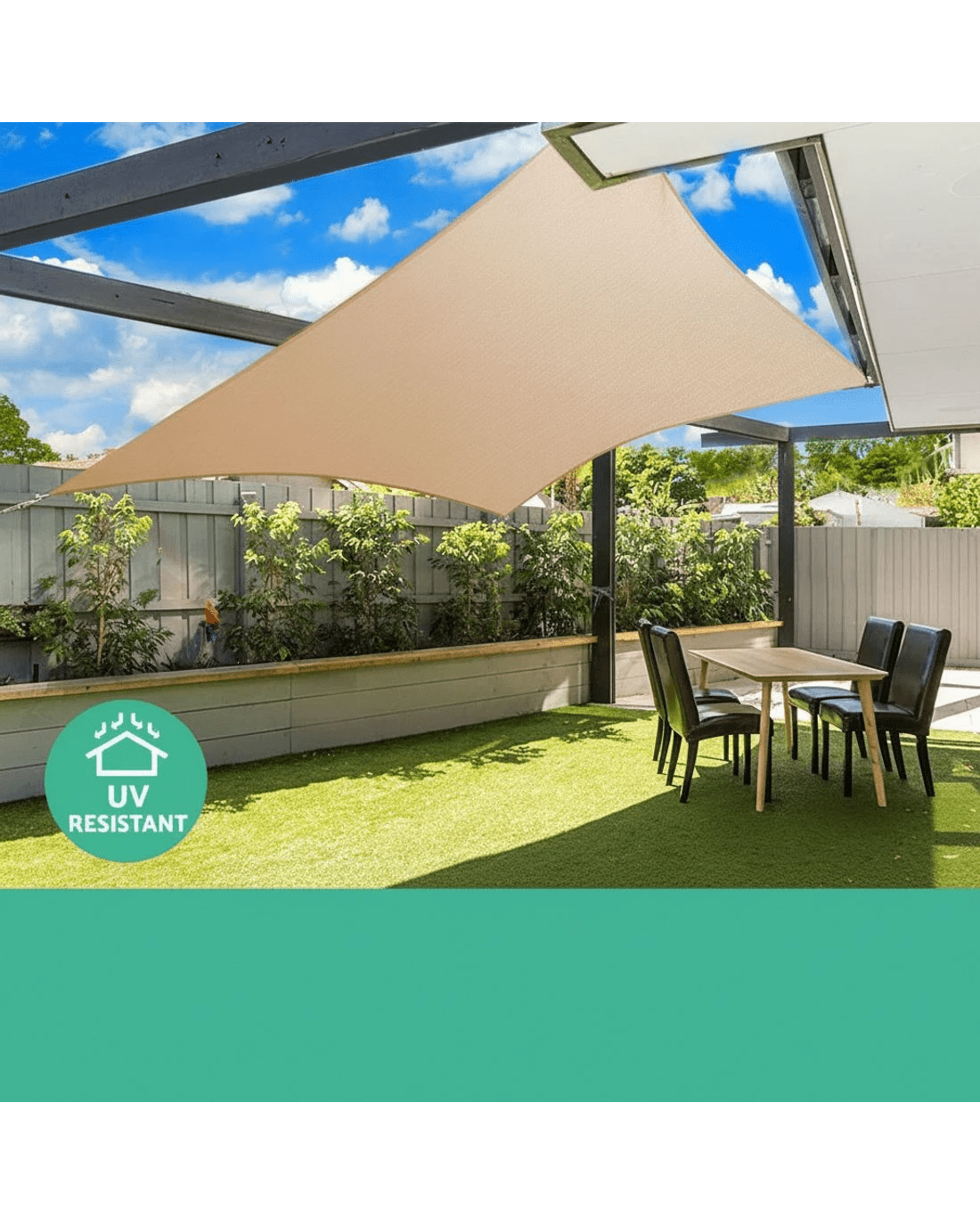 Designed to be a permanent covering, our Shade Sail is made from highly breathable 280g/m2 commercial grade 100% polyethylene fabric. This allows cooling air to pass through and help keep the under shade areas well ventilated. The material also blocks up to 98% of harmful UV rays and is all-weather proof to suit Australian climatic conditions. Plus, the material is further enhanced with Americhem UV-resistant additive from the USA to prolong its UV protection effectiveness.