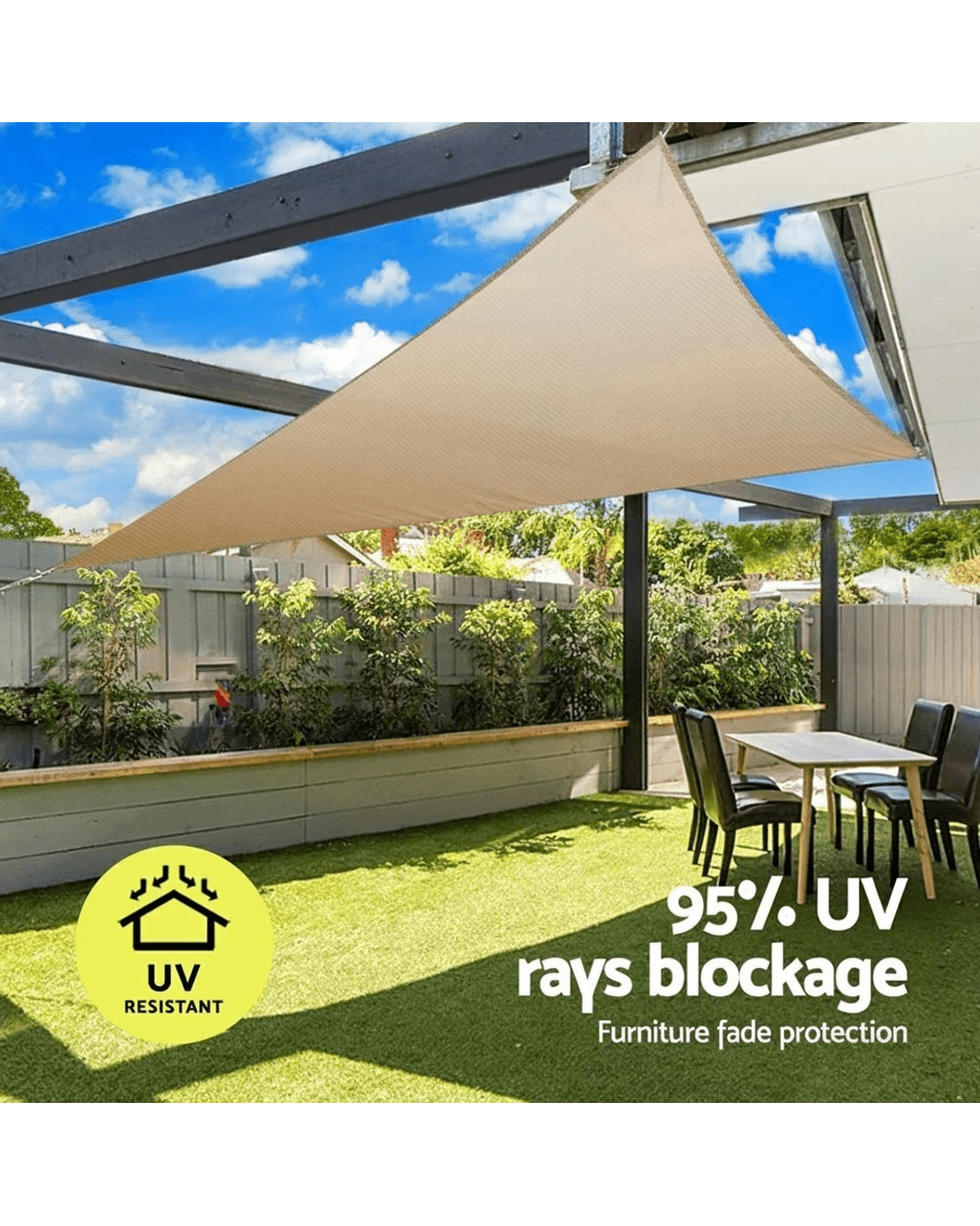 Designed to be a permanent covering, our Shade Sail is commercial grade 100% polyethylene fabric. This allows cooling air to pass through and help keep the under shade areas well ventilated. The material also blocks up to 95% of harmful UV rays and is all-weather proof to suit Australian climatic conditions. Plus, the material is further enhanced with Americhem UV-resistant additive from the USA to prolong its UV protection effectiveness.