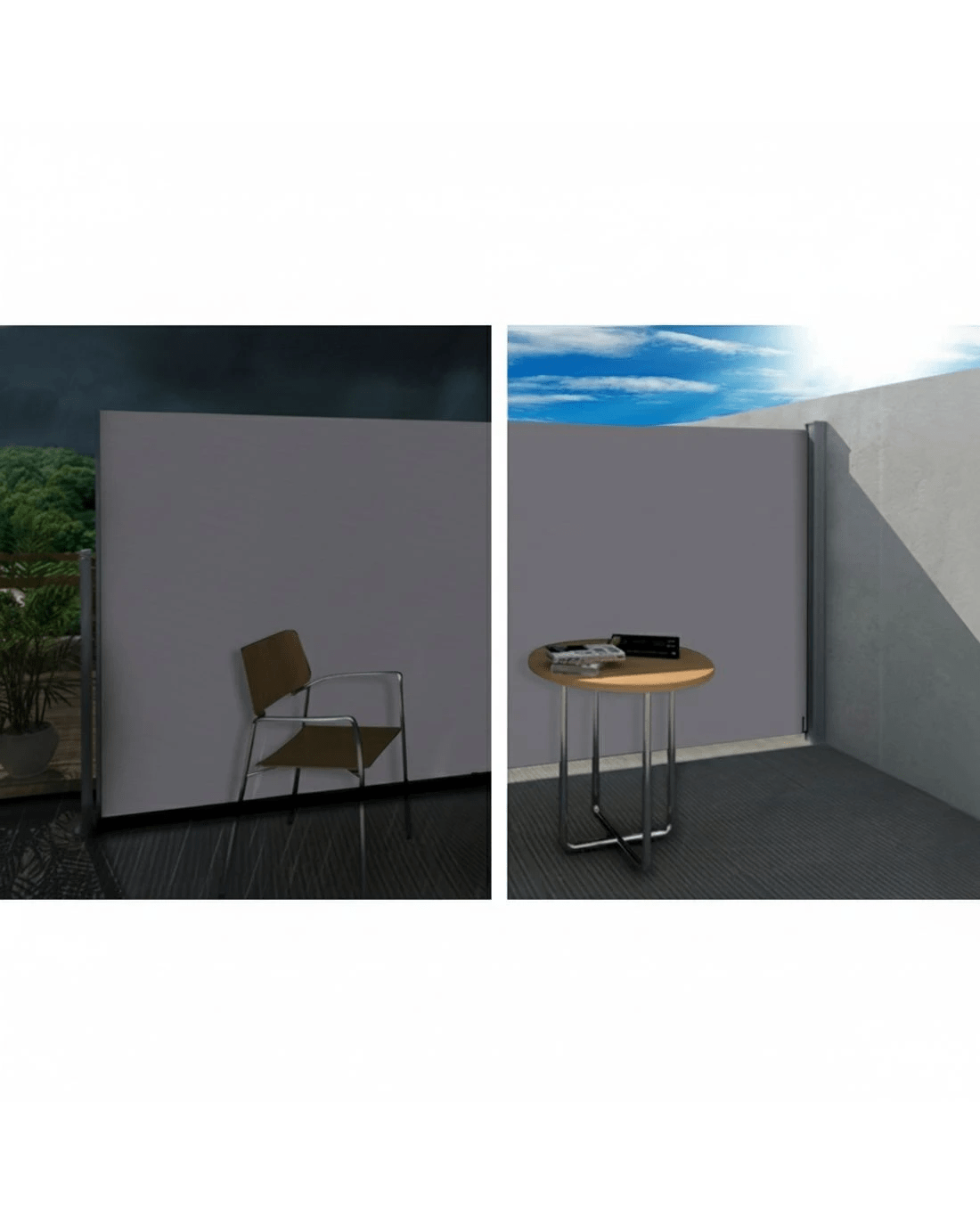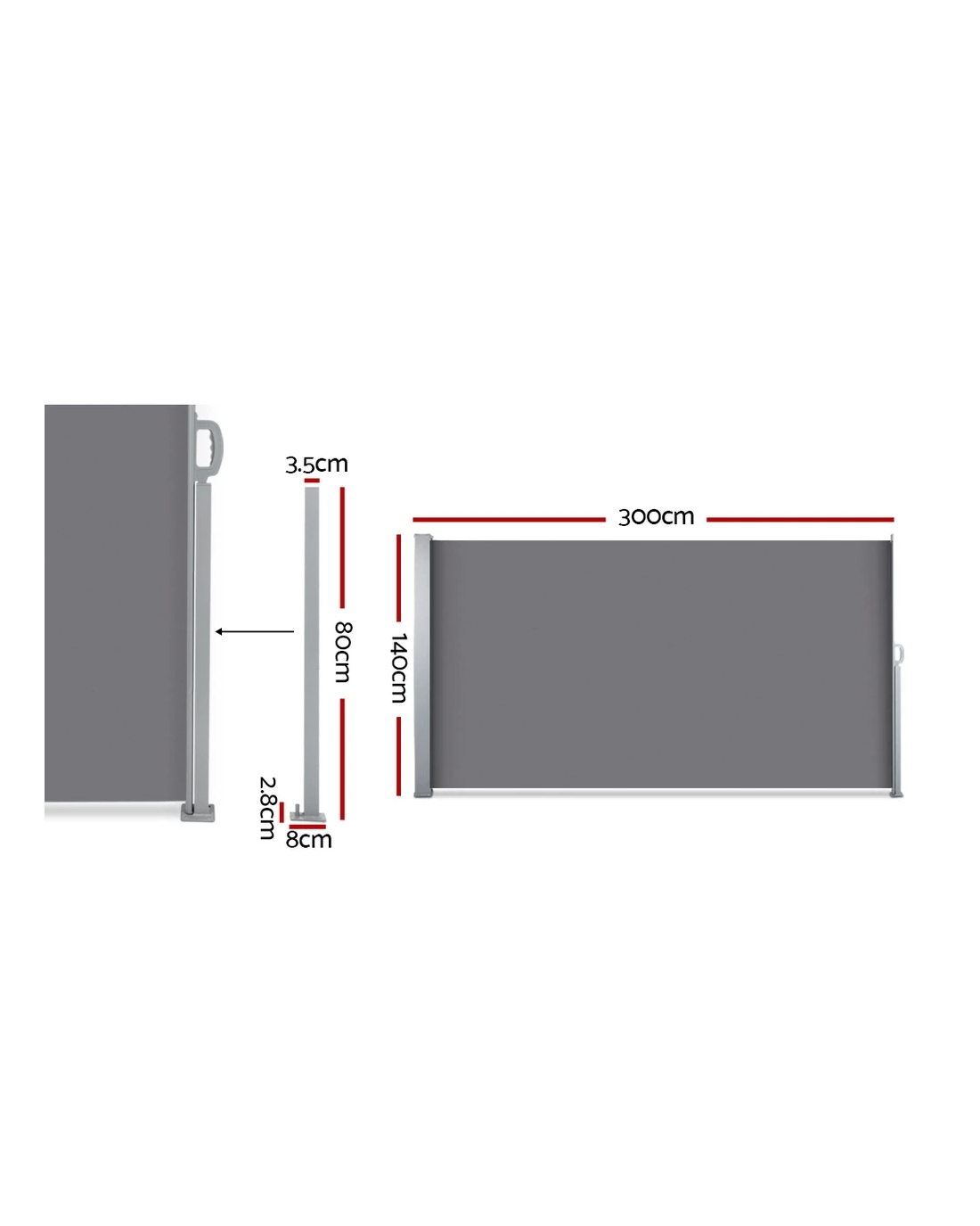 Made from UV resistant and tear resistant polyester with robust steel frame, this quality retractable side awning is perfect for outdoor application. Excellent at blocking prevailing wind and low-lying sun, as well as providing additional privacy. Simple installation and easy operation.