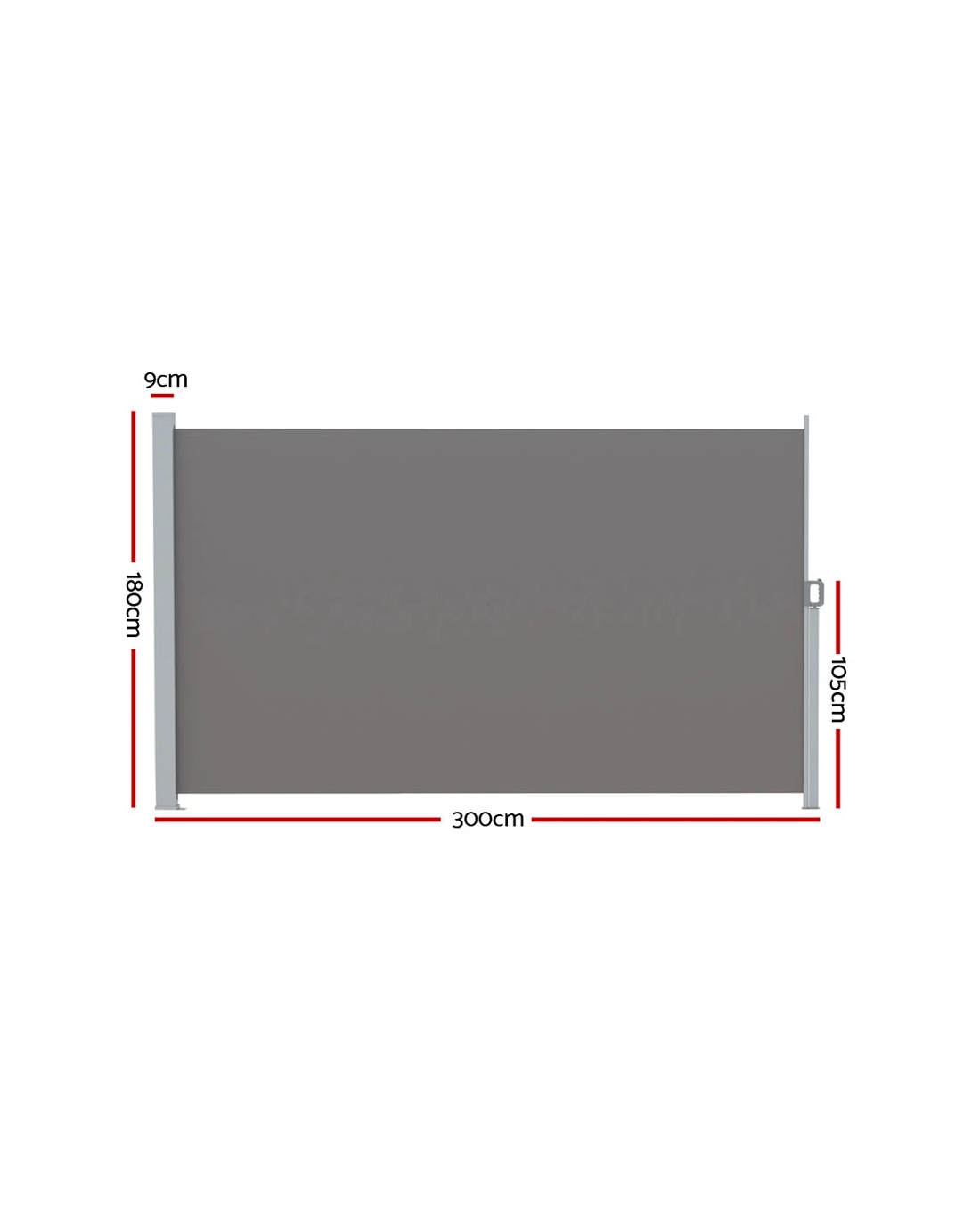 Made from UV resistant and tear resistant polyester with robust steel frame, this quality 180 x 300cm retractable side awning is perfect for outdoor application. Excellent at blocking prevailing wind and low-lying sun, as well as providing additional privacy. Simple installation and easy operation.