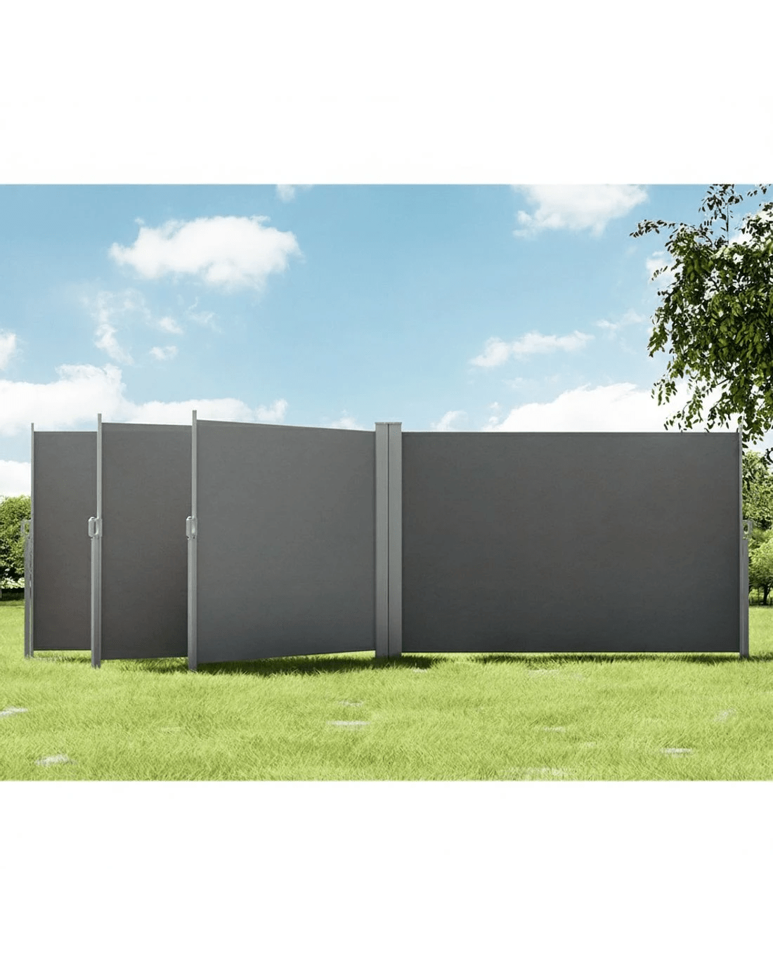 Made from UV-resistant and tear-resistant polyester with robust steel frame, our Instahut Retractable Double-sided Awning is perfect for outdoor application. It is excellent at blocking prevailing wind and low-lying sun, as well as providing additional privacy. It has a stable base and can be installed at flexible angles of up to 90 degree. The awning has a width of 6m and has an automatic roll-back function for easy keeping.