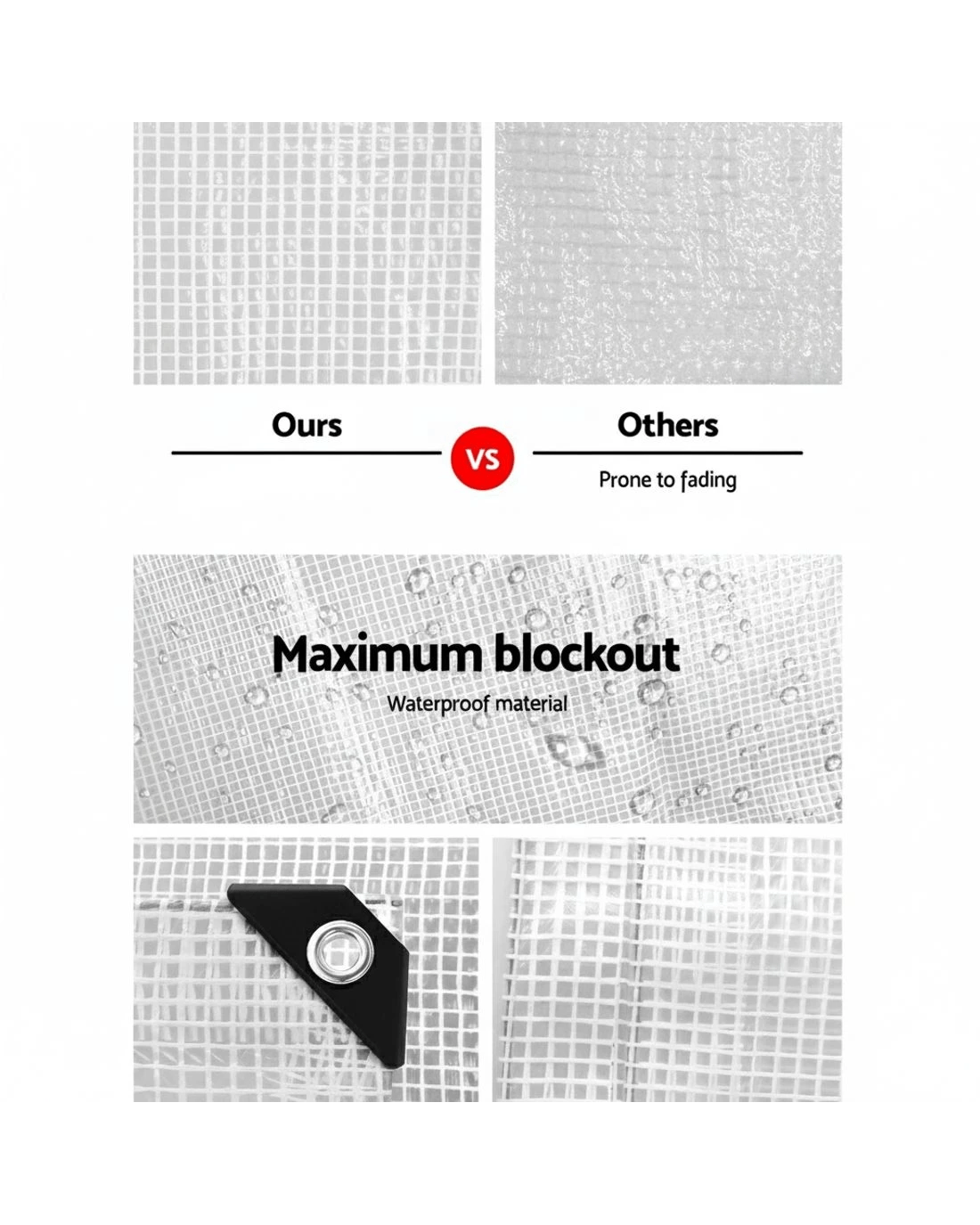 Are you tired of having the bottom of your tent always wet with every camping trip? Or does the rain rot your firewood? Or do you need some reliable cover for your vehicle or craft? Or maybe just a little shade for yourself. Look no further than our Instahut Poly Tarp. Made of high-density 135gsm polyethylene (PE) with a double-coated protection, the tarp is durable, waterproof, anti-fade, UV-resistant, high heat and deep cold tolerant and designed with reinforced edges and corners. Better still, it comes with reinforced eyelets spaced out at 0.9m intervals to ensure secured tie-downs without any hassles. Come wind, rain, hail or shine, our tarp knows no boundaries in getting the work done to your satisfaction.