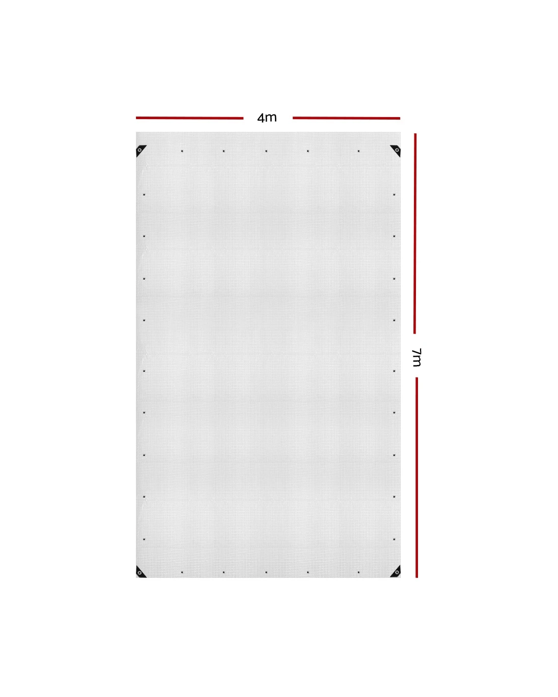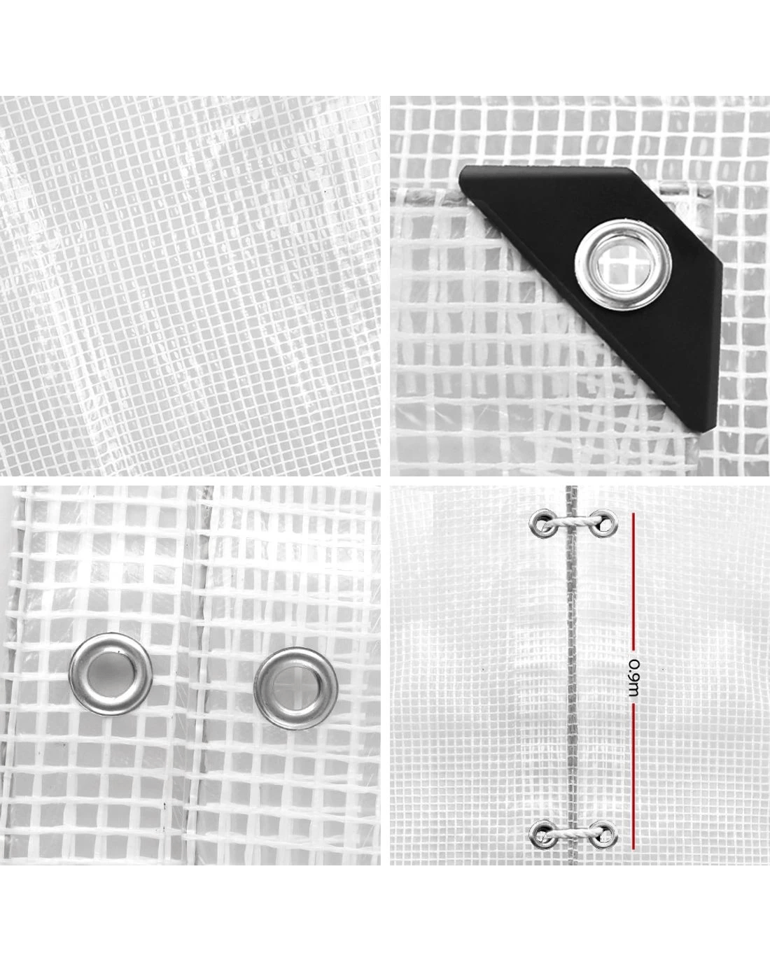 Aluminum reinforced eyelets at 0.9m intervals