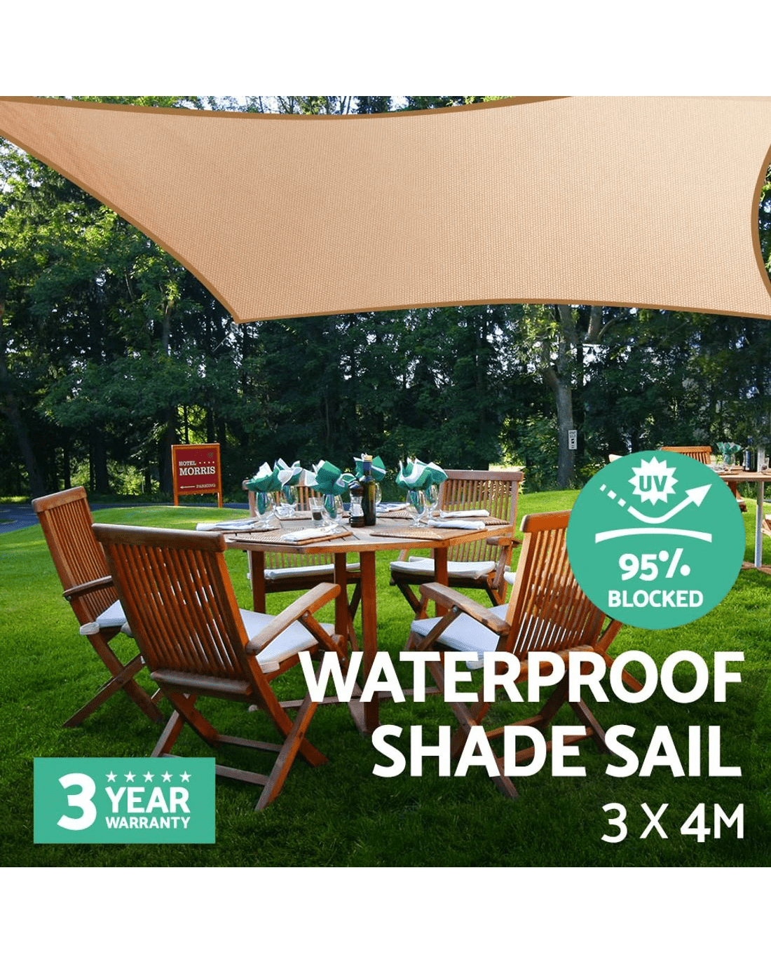 Sold by Aisle SixInstahut Waterproof Shade Sail 3x4m Rectangle Sand 95% Shade Cloth - Beige