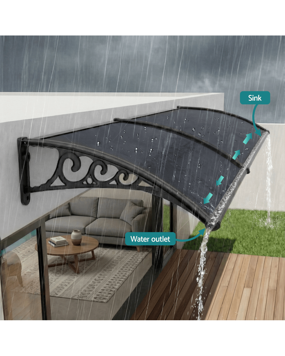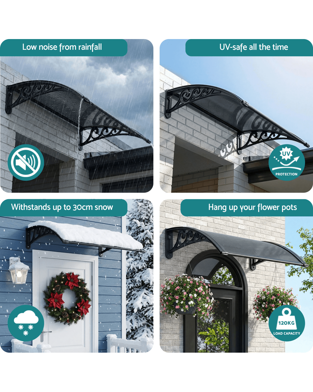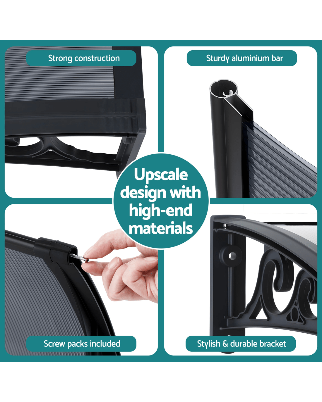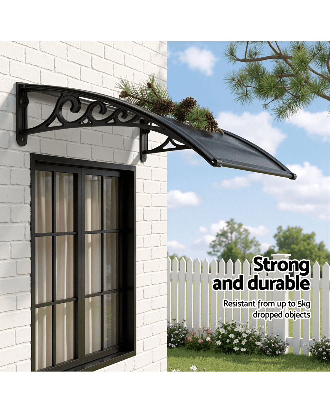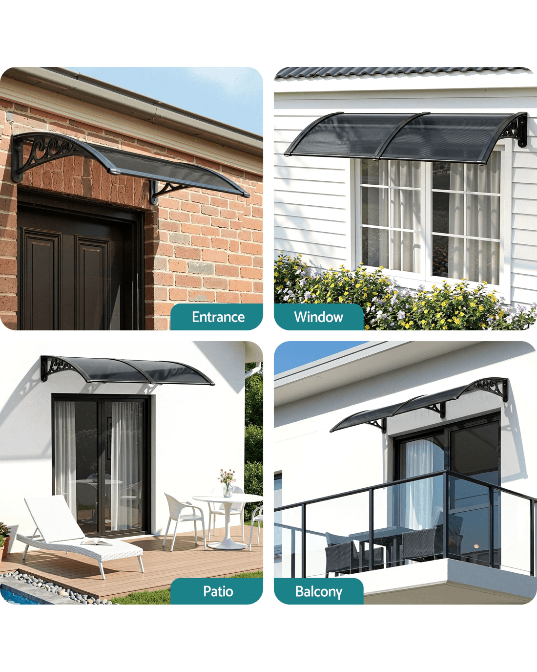 Featuring a durable 5mm thick hollow panel, the window awning is ideal for home or office use and is designed to double up as a door canopy or balcony cover if required. The panel is affixed to sturdy aluminium bars and the entire assembly is corrosion-resistant. Which simply means many good years of all-weather protection(Only for normal weather condition,extreme weather condition is excluded) for your doors and windows. And of course, looking absolutely stylish and modern with your home or office building too.
