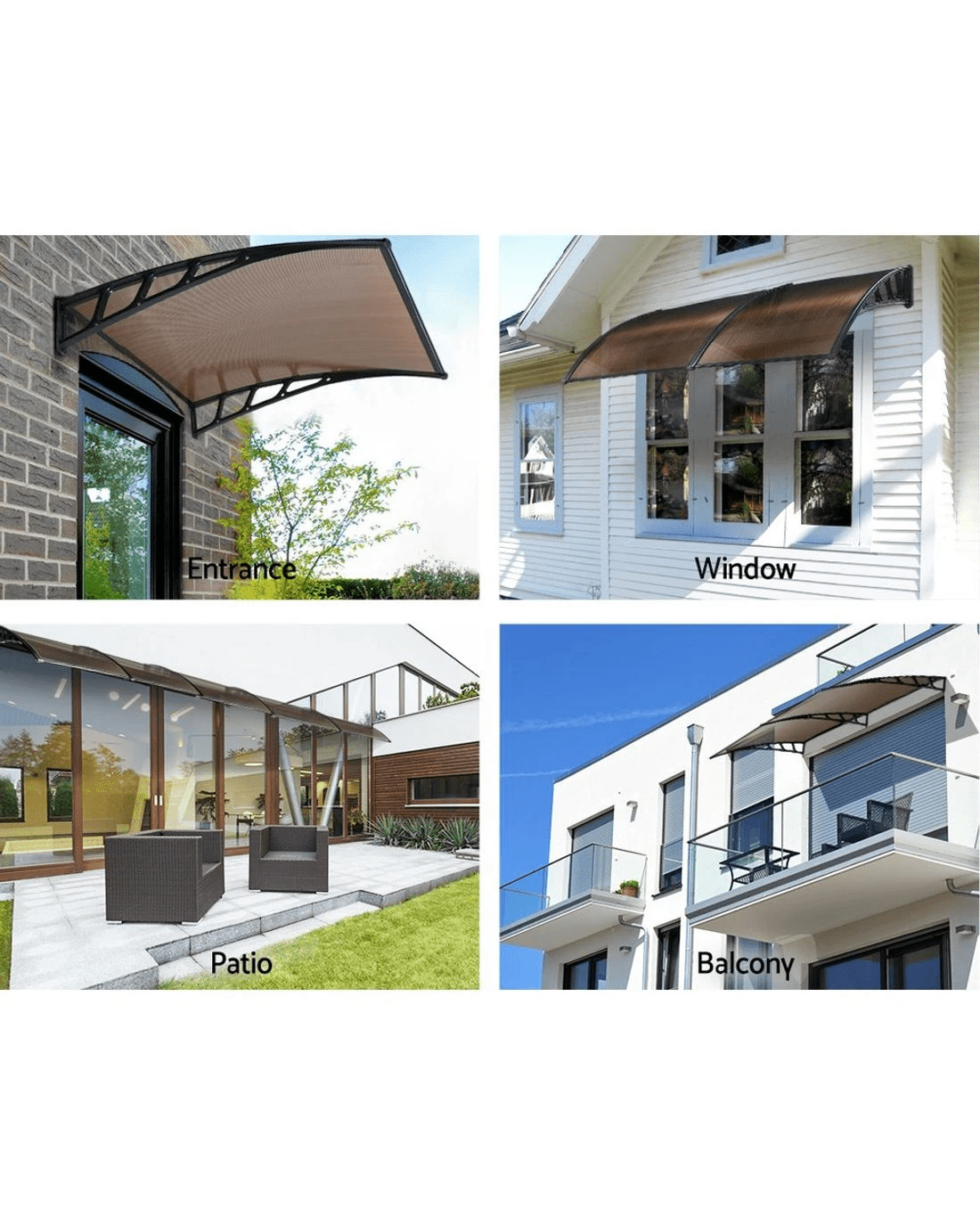 Sold by Aisle SixInstahut Window Door Awning Canopy 1.5mx4m Sheet Plastic Frame - Brown