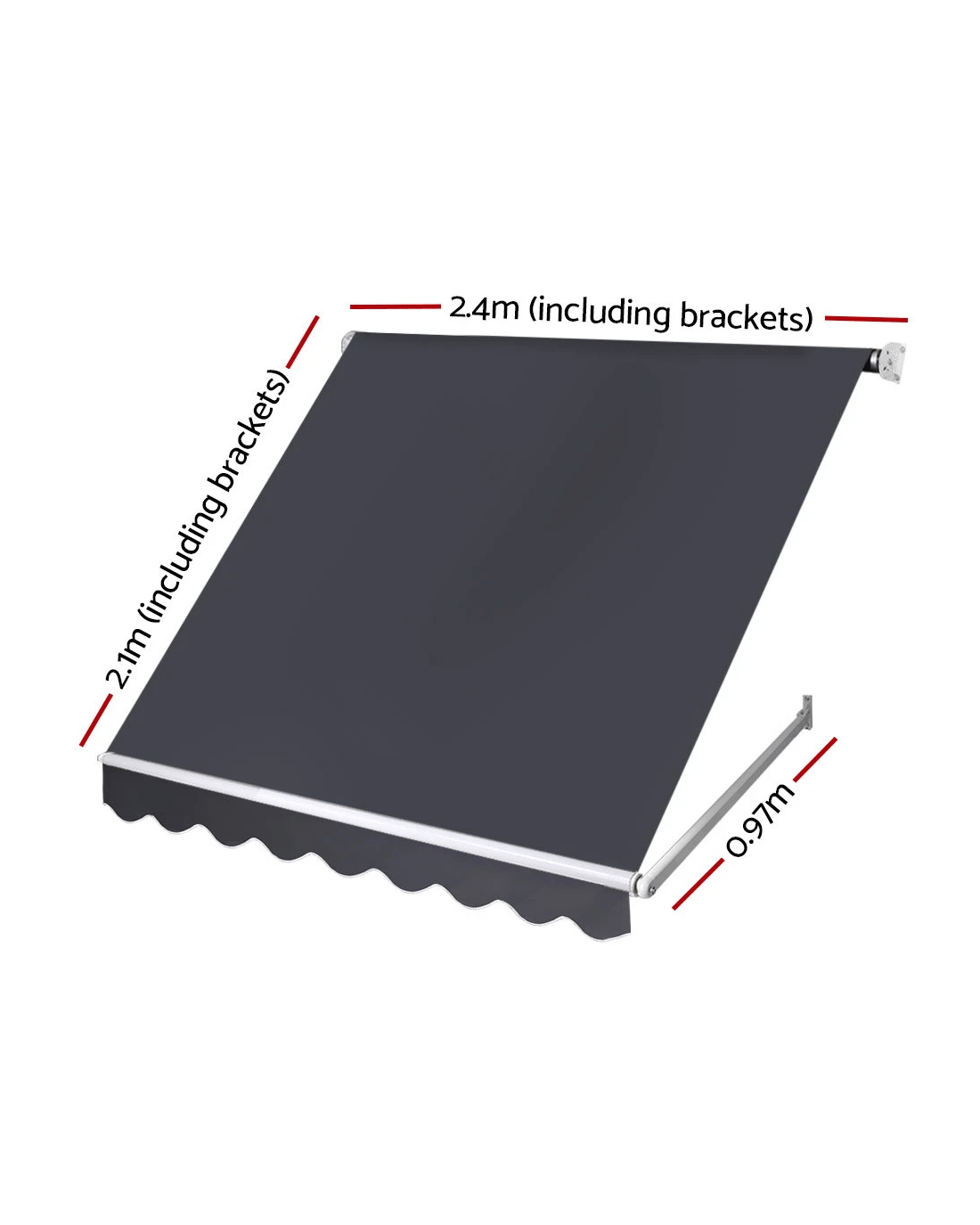 Sold by Aisle SixInstahut Window Fixed Pivot Arm Awning Outdoor Blinds Retractable Patio 2.4X2.1M - Grey
