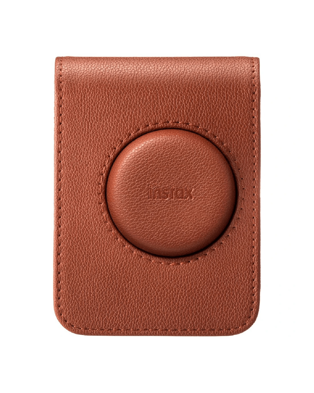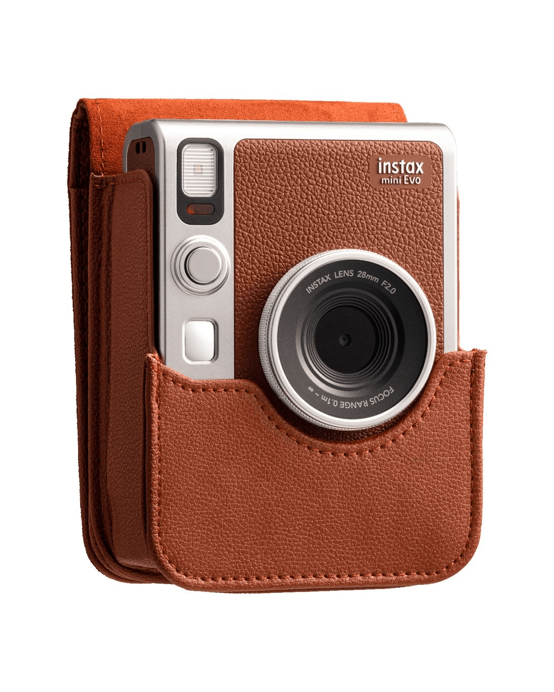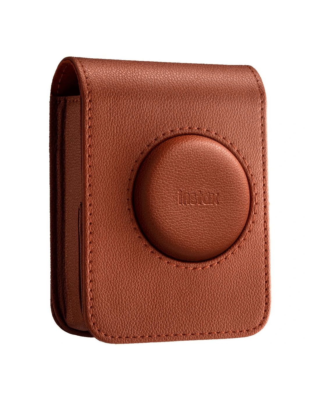 - The camera case comes in brown to match the Mini Evo camera body and features a debossed Instax logo.