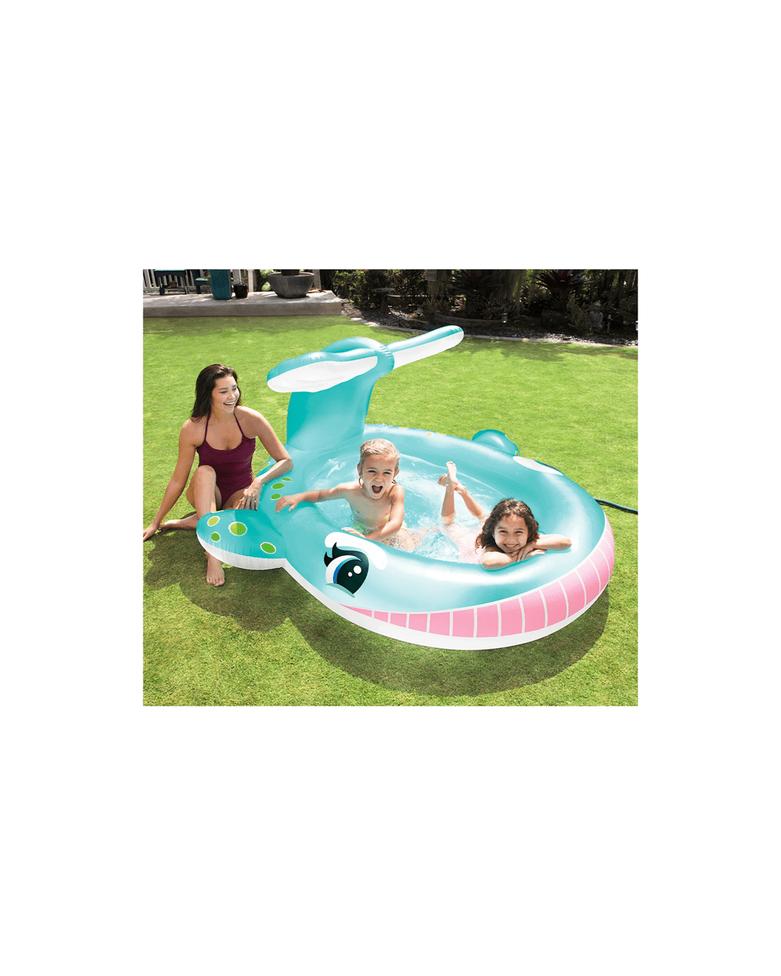 Sold by KG SuperStoreINTEX 2.01m x 1.96m Whale Spray Pool Garden Hose Sprayer 200L 11ga Vinyl - Blue