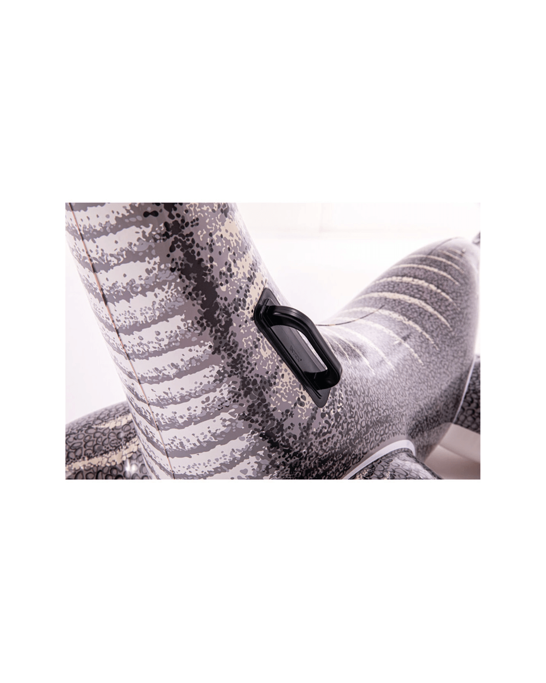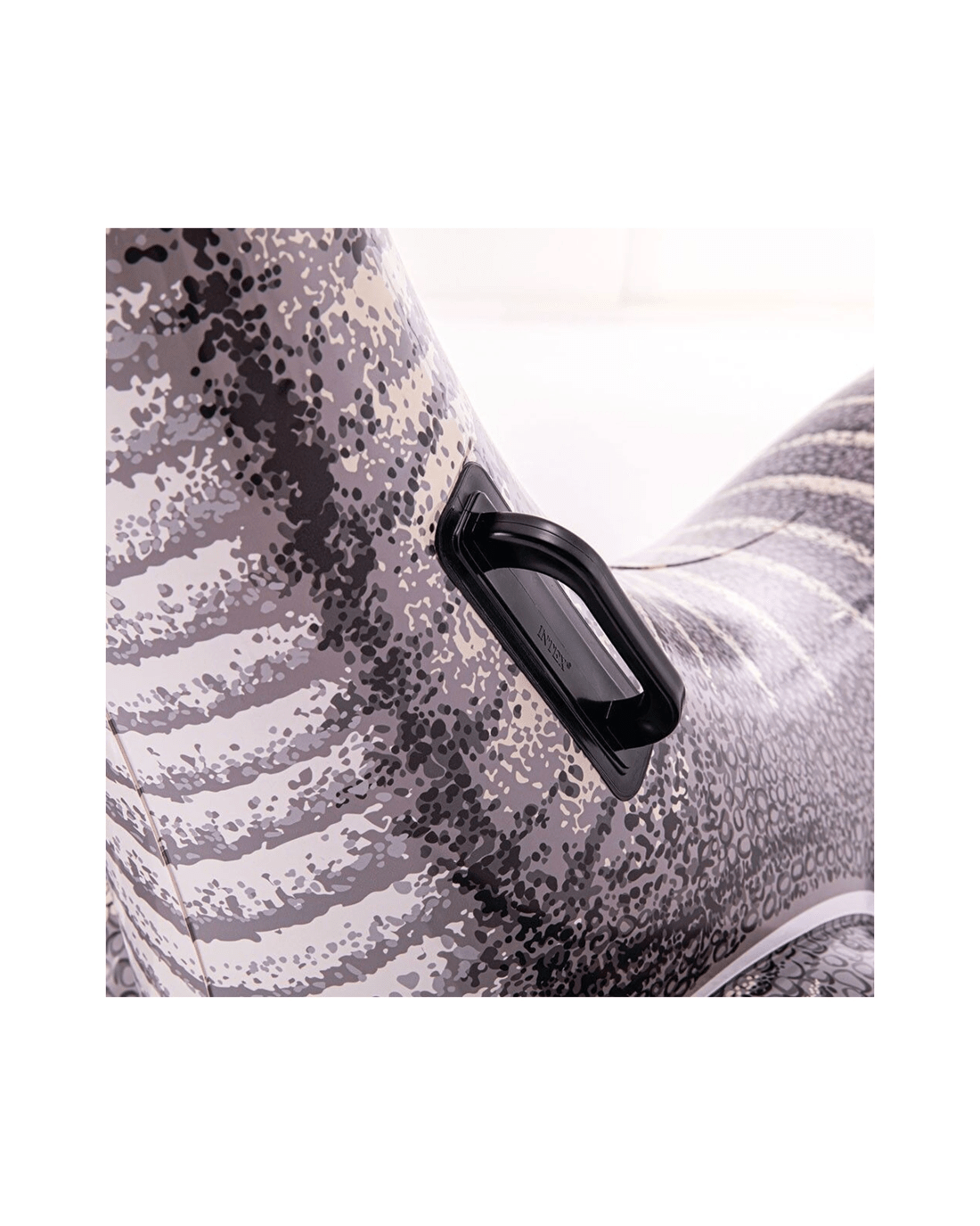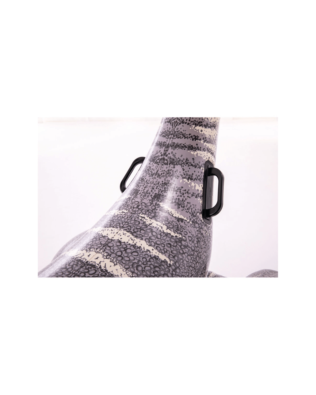 This inflatable features a sturdy design with two heavy-duty handles for stability and safety during use. It comes with an included repair patch for added convenience, ensuring long-lasting enjoyment. Its approximate deflated size is 70 inches by 37 inches, providing ample space for children to ride comfortably and securely.