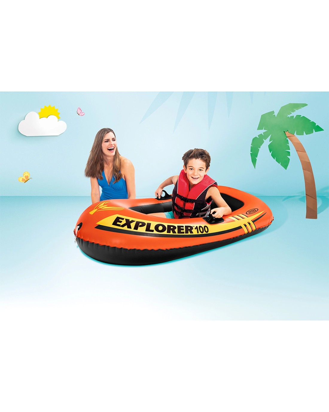 The Intex Explorer 100 Inflatable Boat is designed for recreational water activities, offering a fun and safe experience for kids aged 6 and above. Perfect for pool fun or casual water adventures, this bright and durable boat is ideal for young water enthusiasts looking to enjoy summer days with friends or family.