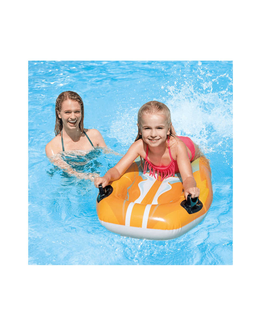 The InteX Joy Rider Floating Bed is designed for children to learn swimming and enjoy water activities safely. Crafted from durable inflatable material, it offers a fun and supportive platform for pool play, encouraging confidence in the water.