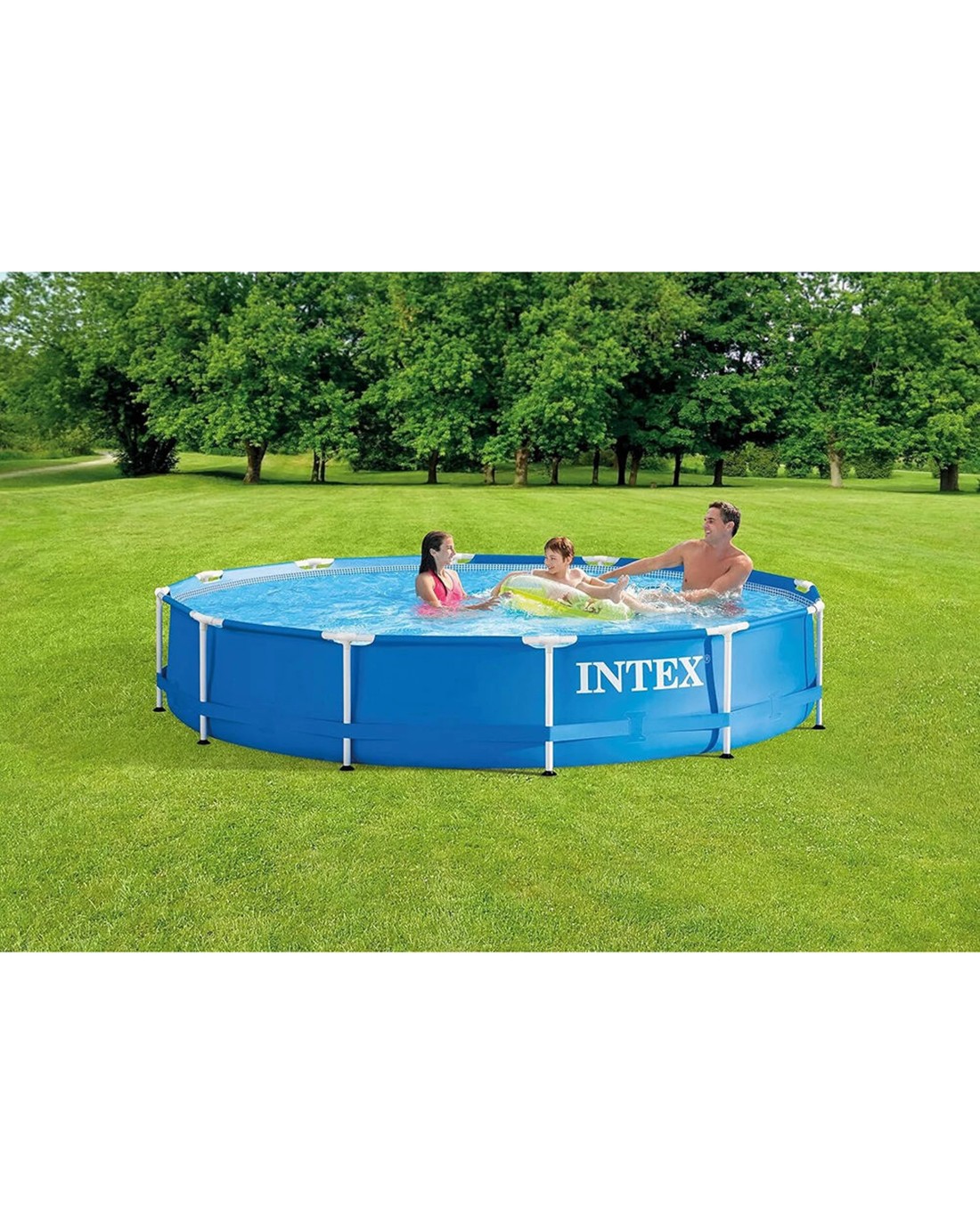 The Intex Metal Frame Pool Set is designed for outdoor family recreation, providing a durable and easy-to-assemble above-ground swimming pool for warm weather enjoyment. Its robust construction and safety features make it an excellent choice for relaxing and playing in your backyard.