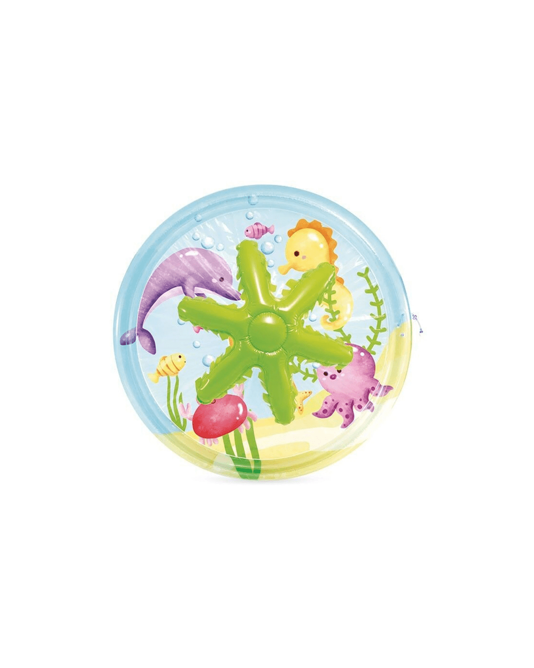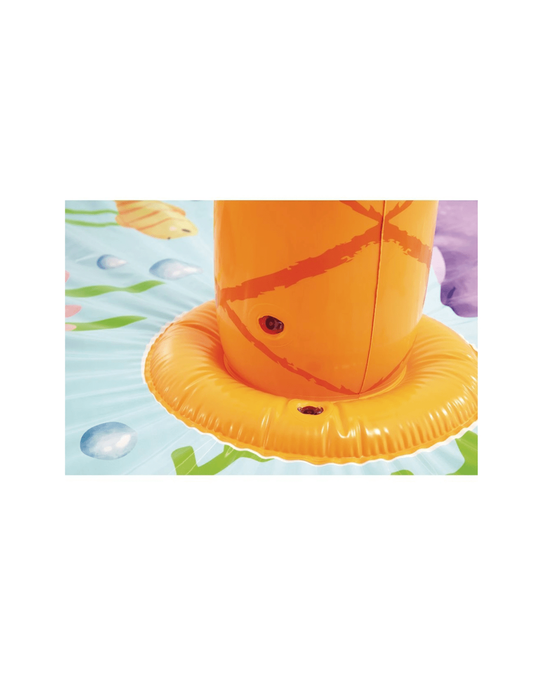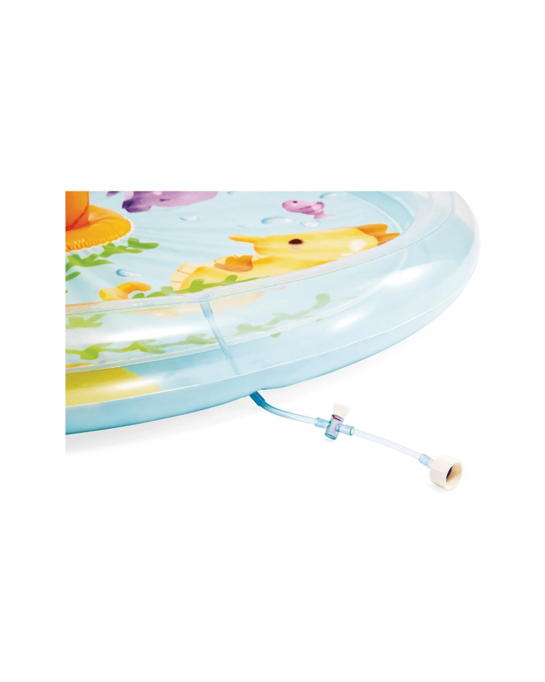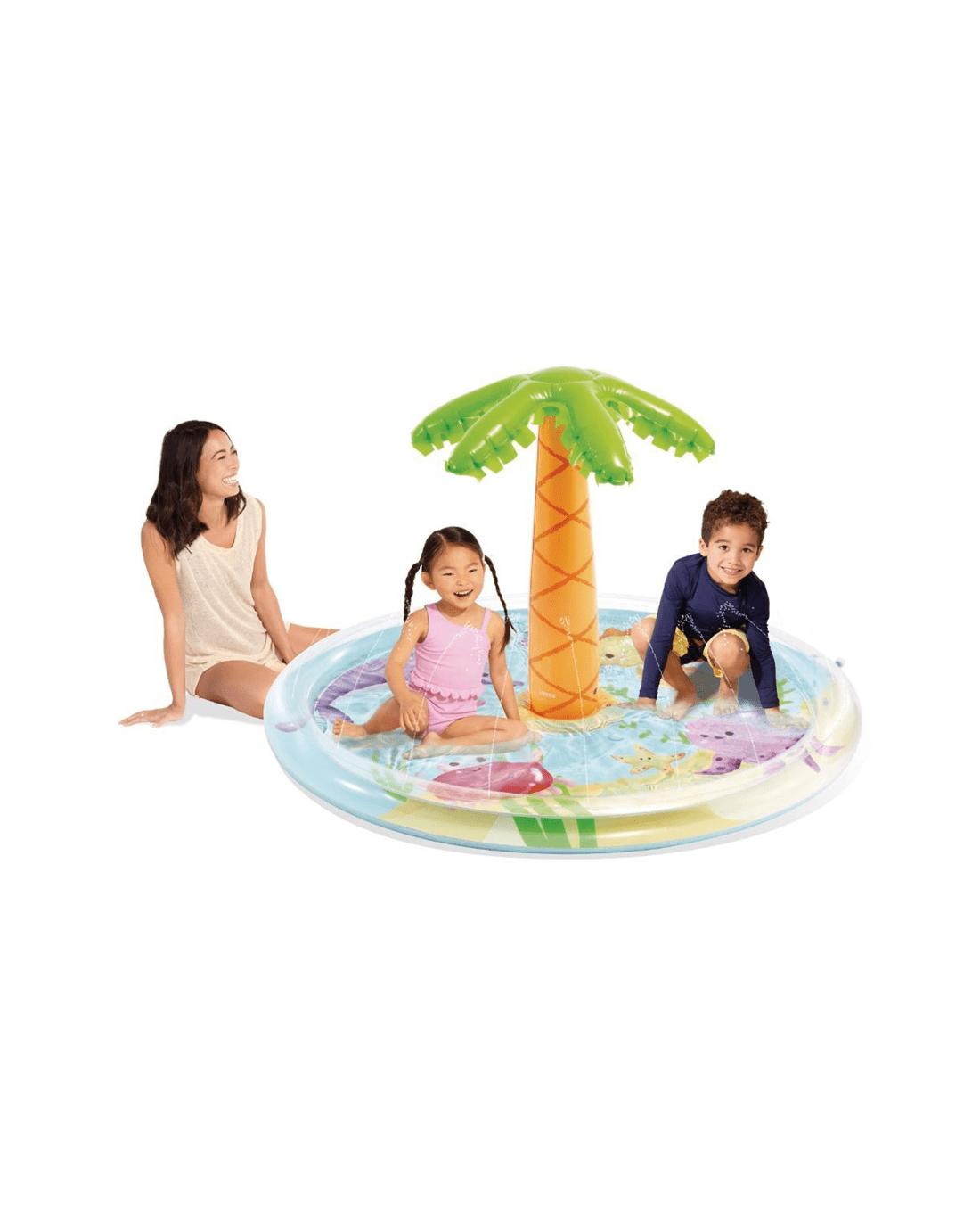This fun, safe wading pool features an adorable palm tree design with a centre inflatable trunk and green fronds, complemented by a colourful ocean animal liner adorned with sea creatures such as seahorses, dolphins, crabs, and fish. Easily connect a garden hose to activate the light sprayer, providing refreshing water play and entertainment for your kids.