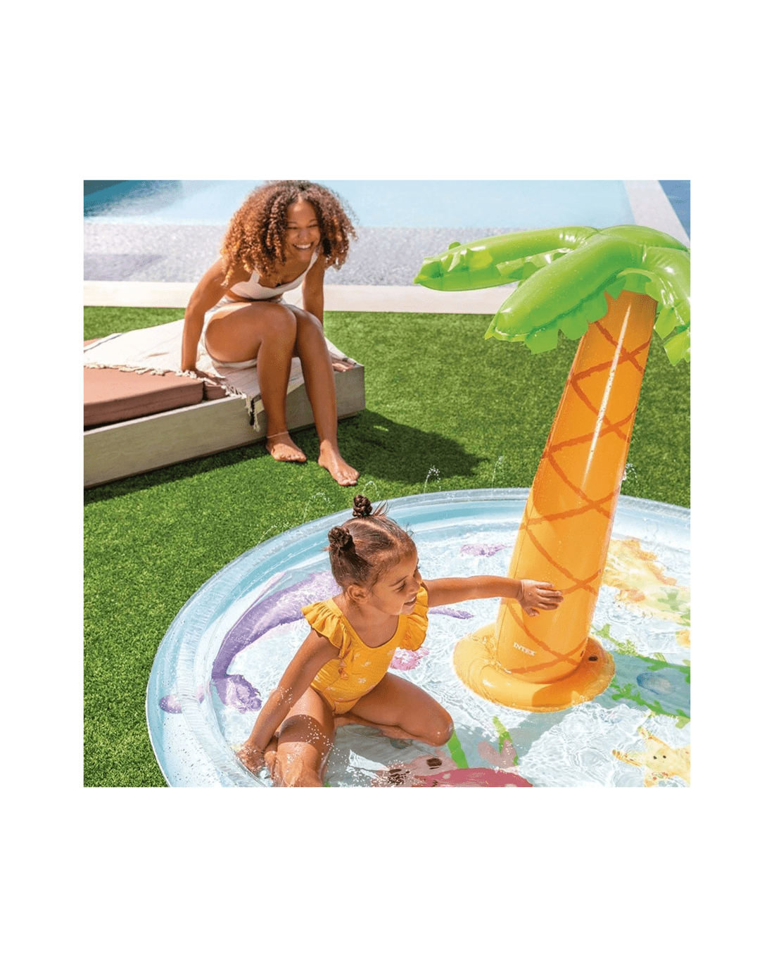 The Intex Palm Tree Inflatable Kids/Childrens Spray Pool is designed for outdoor water fun. Perfect for children aged 2 years and above, it offers a vibrant and engaging tropical theme that sparks imagination and outdoor play.
