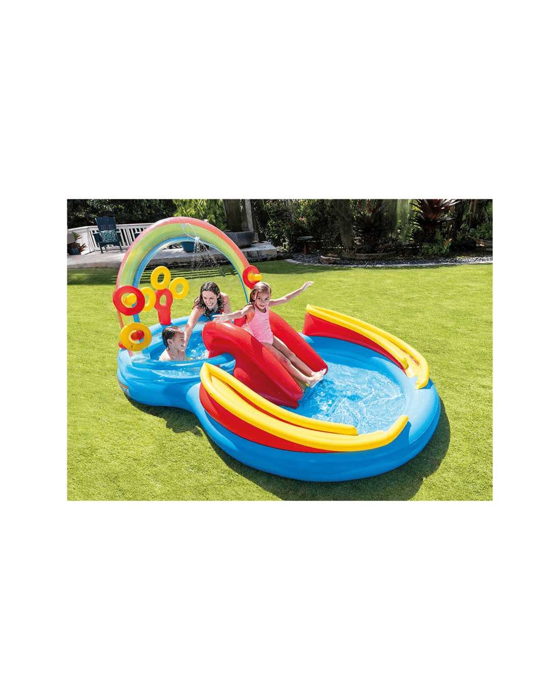 Sold by KG SuperStoreIntex Rainbow Ring Play Centre Water Slide Inflatable Pool Water Games - Multi