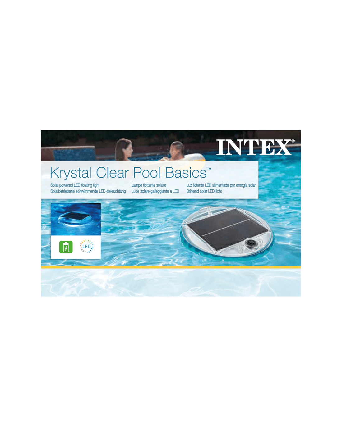 The Intex Solar Powered LED Floating Light is designed for adding decorative illumination to your above ground pool. This solar-powered floating light provides a practical and stylish way to enhance your pool environment, offering versatile lighting options suited for evening swims or outdoor gatherings.