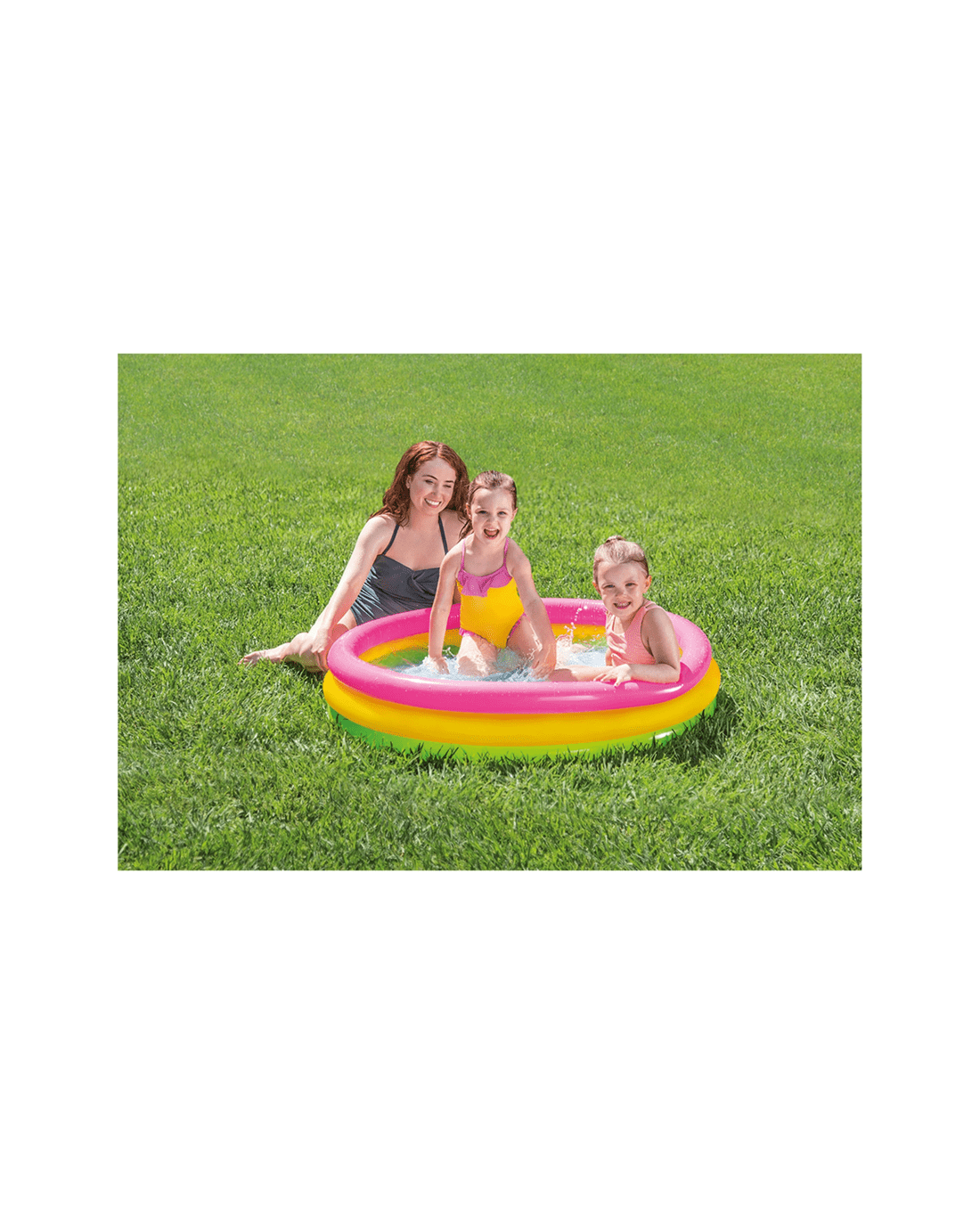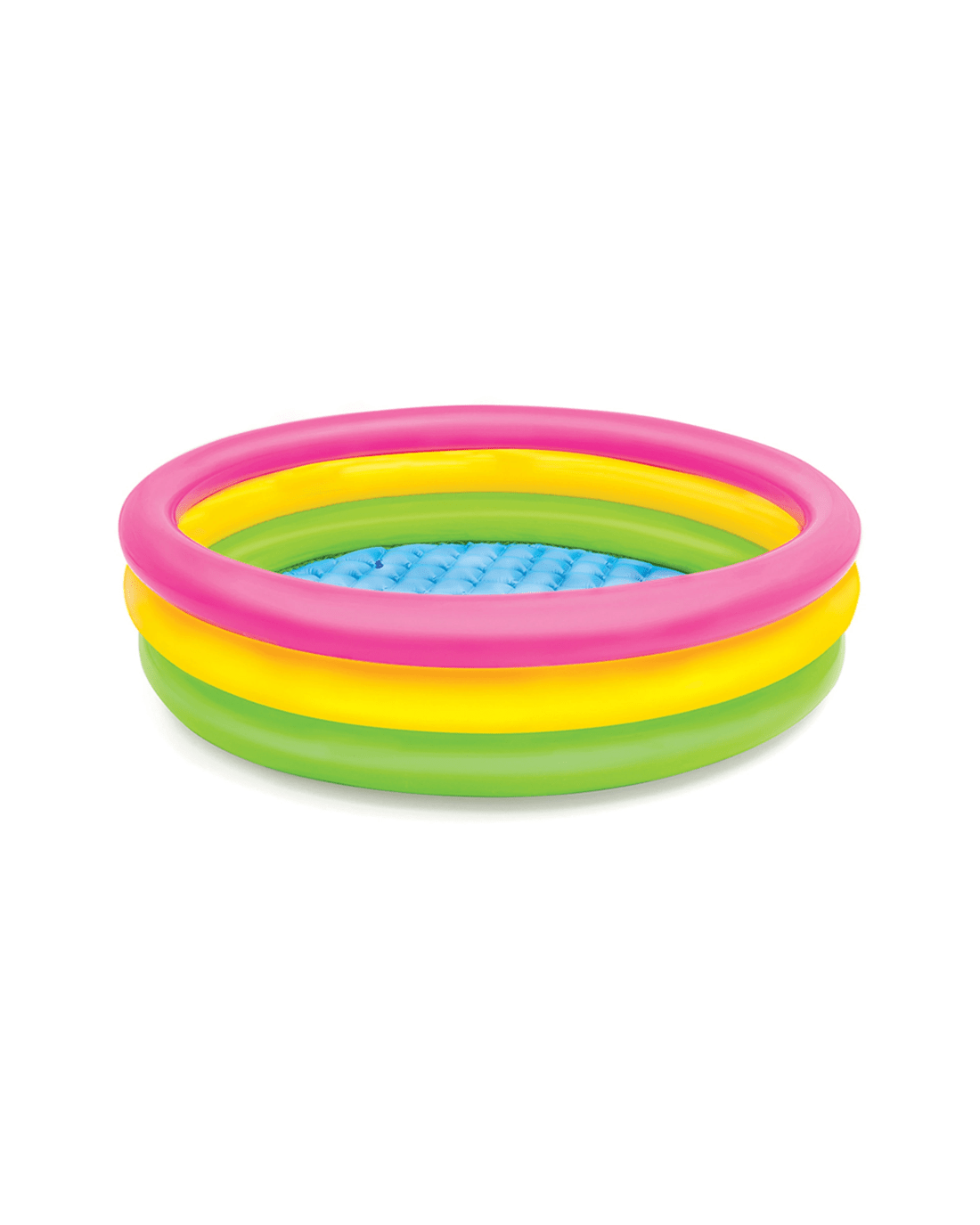 The INTEX Sunset Glow Kiddie Pool is designed for young children to enjoy safe water play in the backyard. Its bright, colourful rings and comfortable inflatable floor make it a fun and secure environment for splash-filled adventures.