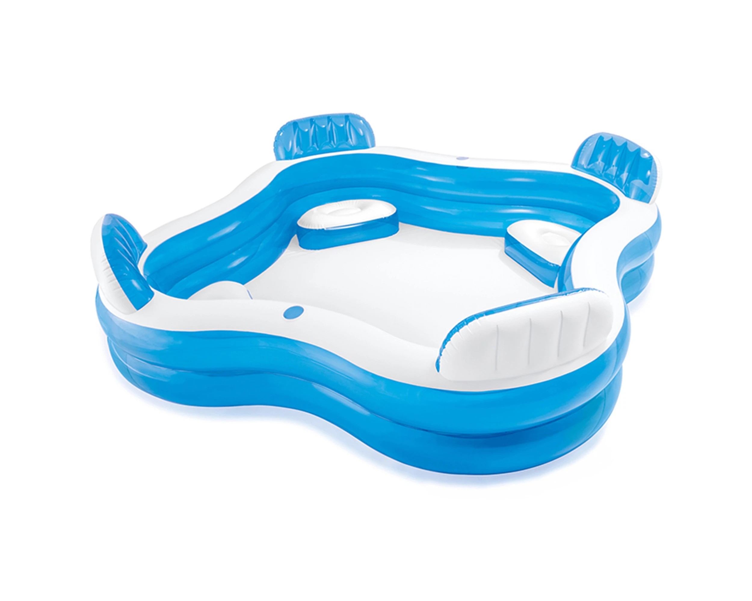 Intex Swim Centre Family Pool Lounge Inflatable Pool 90 Inch 4 Seats 2 Holders - Blue