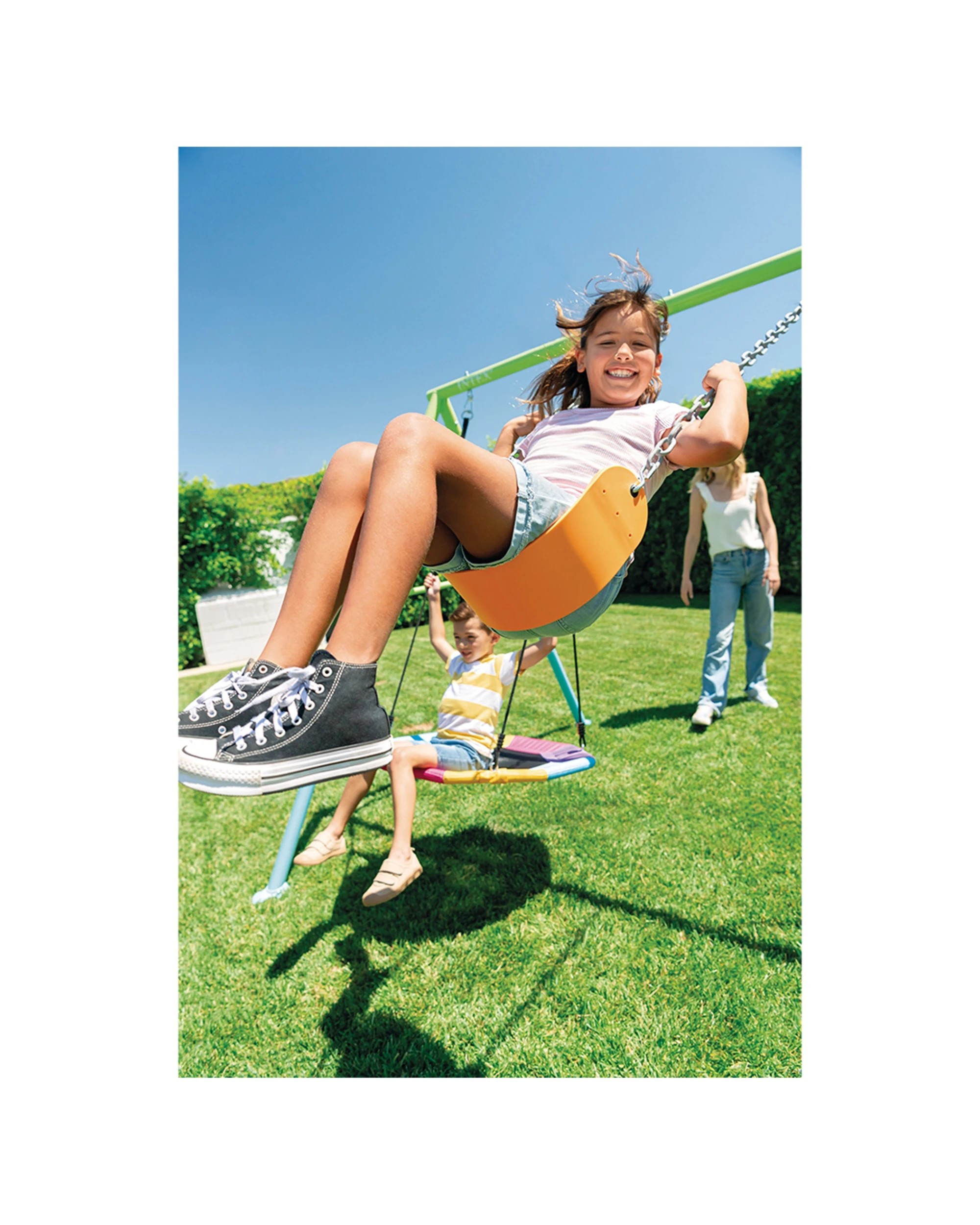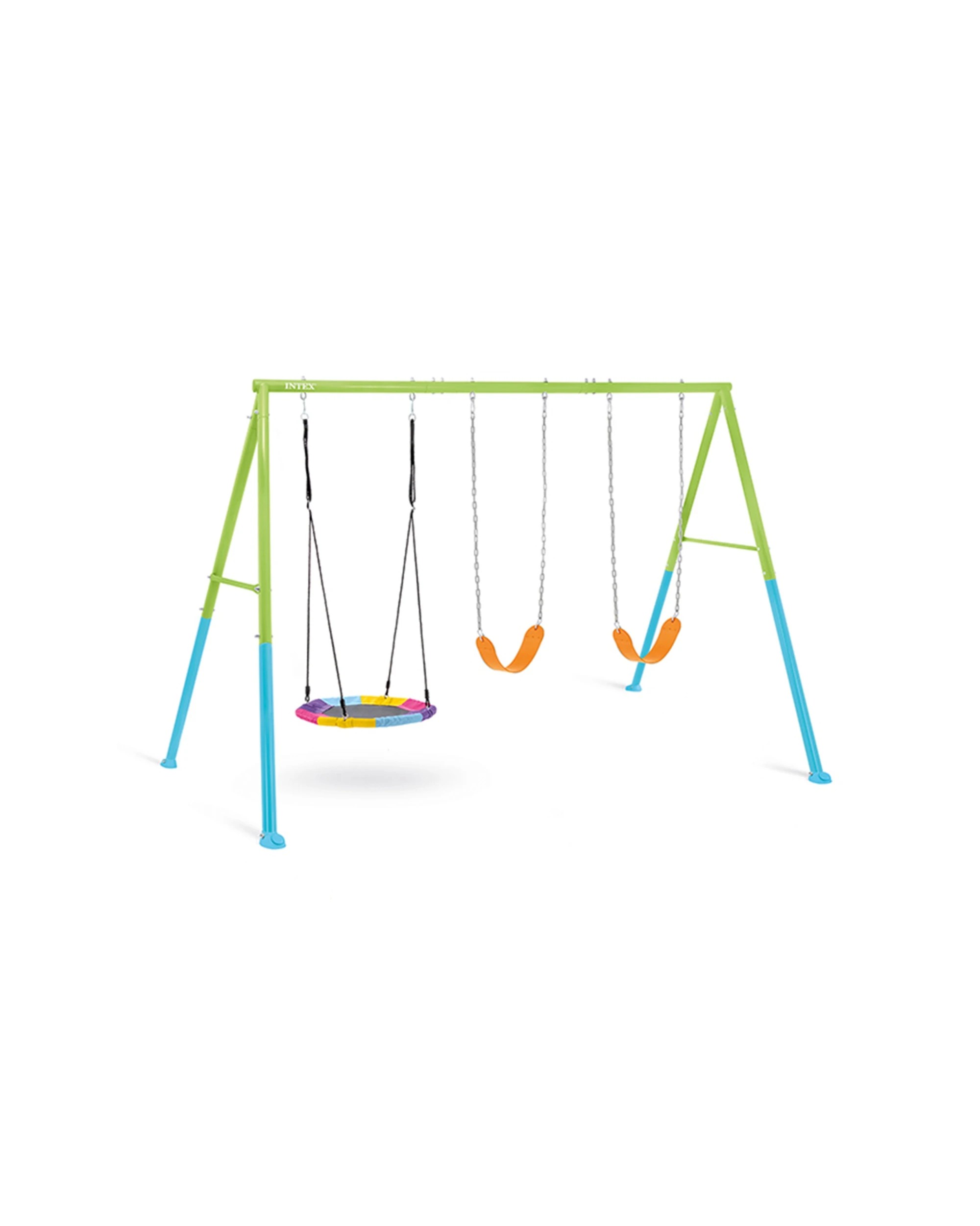 Intex Three Feature Steel Frame Kids Swing Set Backyard 3 Years Plus Saucer Glider - Green