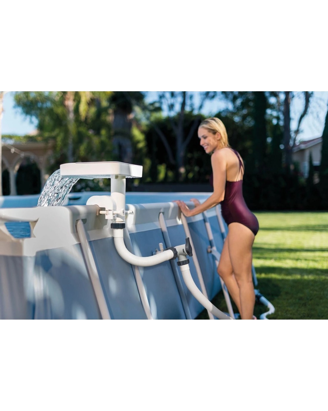 Designed to fit all round and rectangular Metal Frame, Prime Frame, and Ultra Frame pools, this waterfall offers versatile compatibility. It comes with an adjustable mounting bracket and bypass valve kit for easy installation and customised positioning.