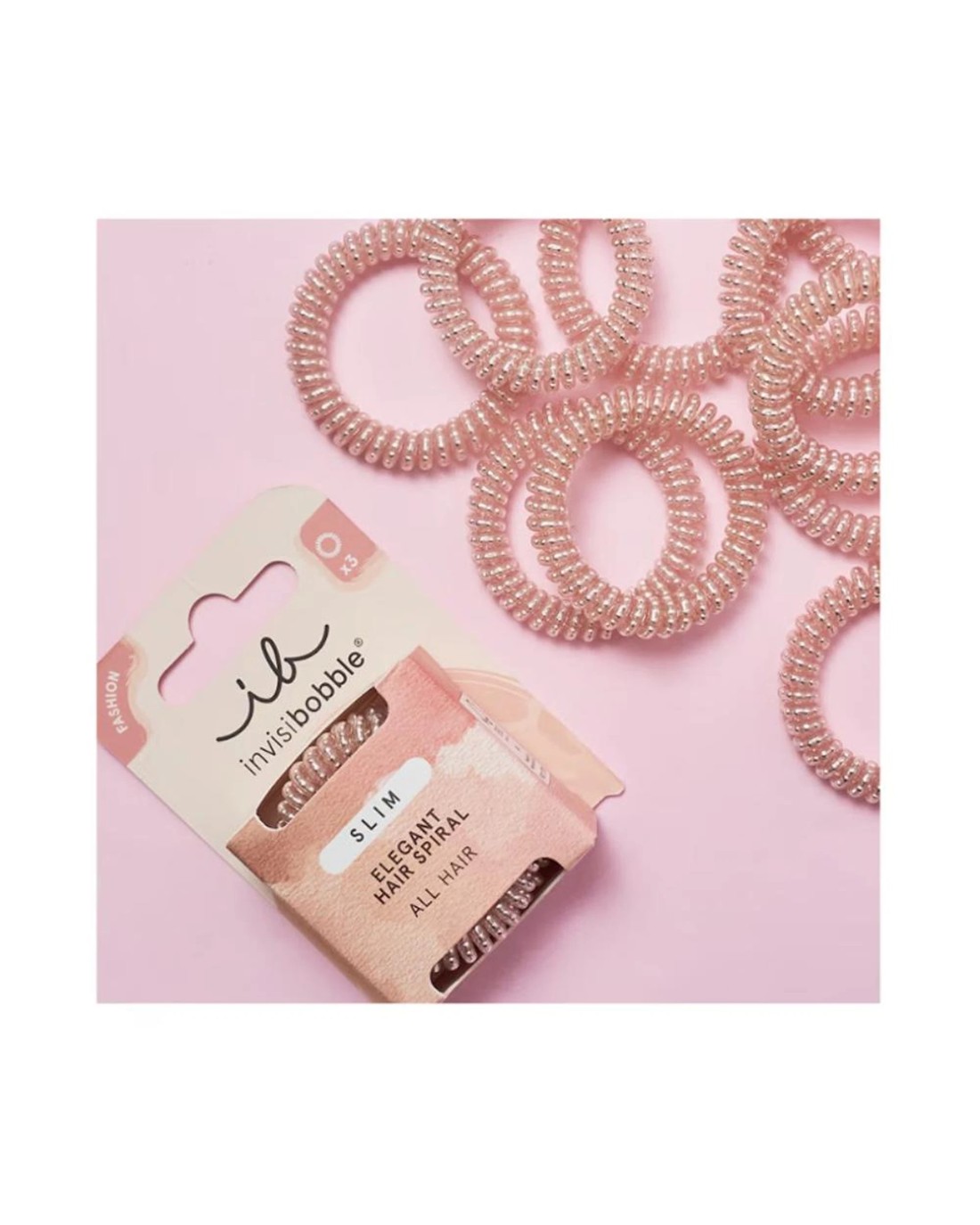 Invisibobble Slim Elegant Spiral Traceless Hair Ties 3Pk - Pink Monocle - Pink