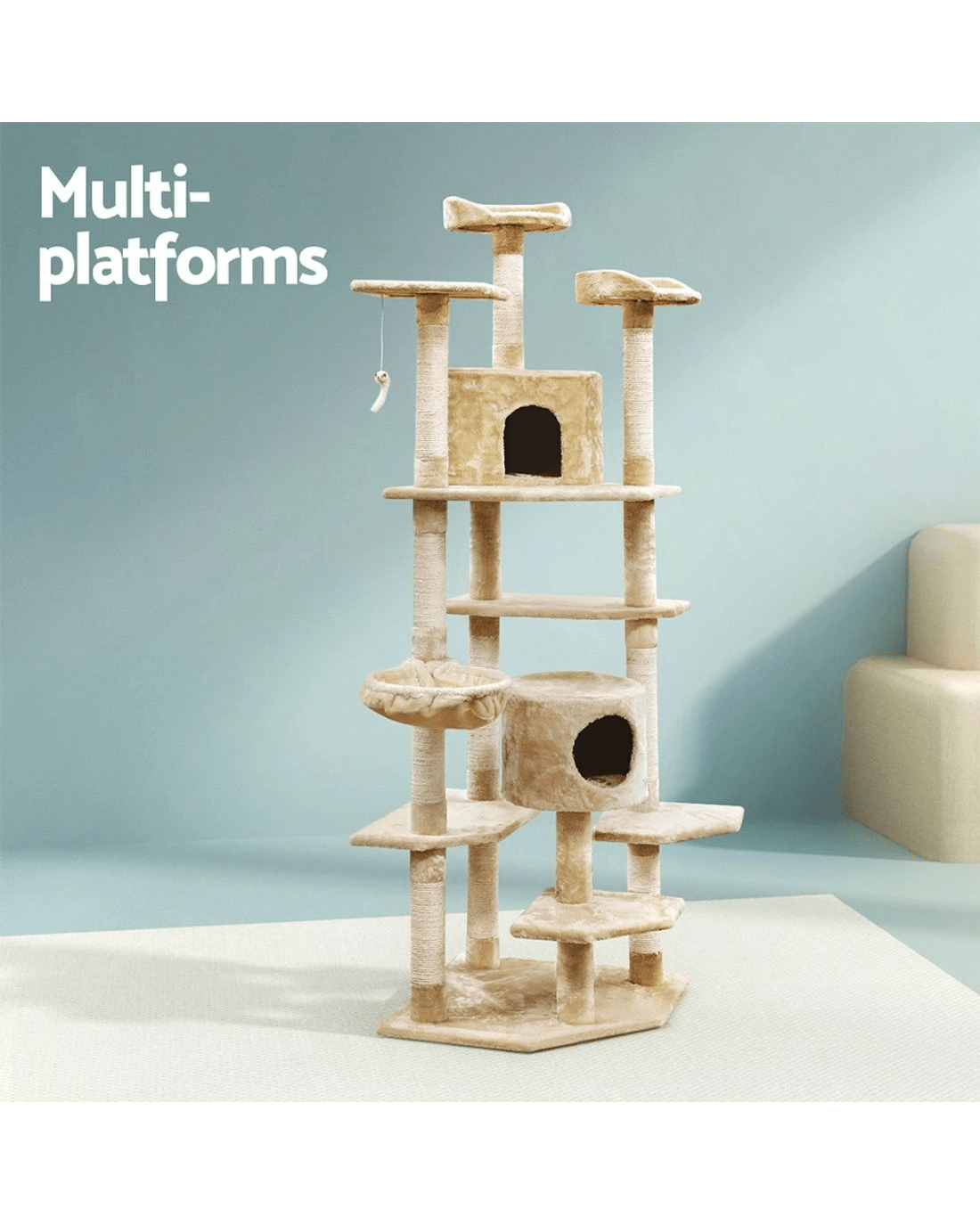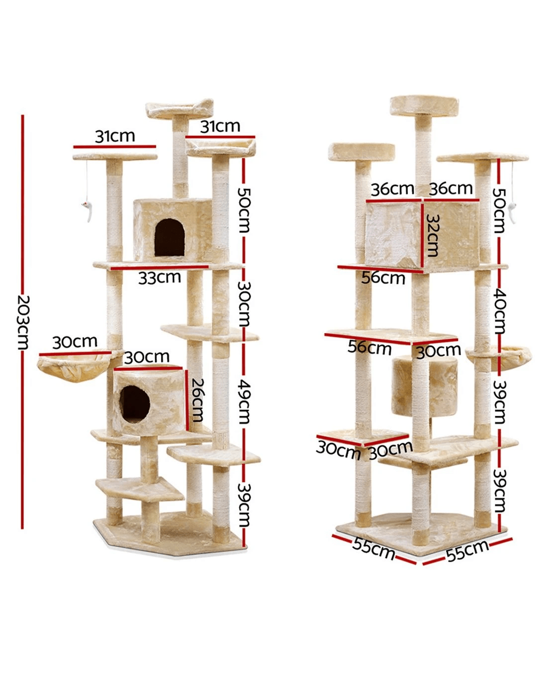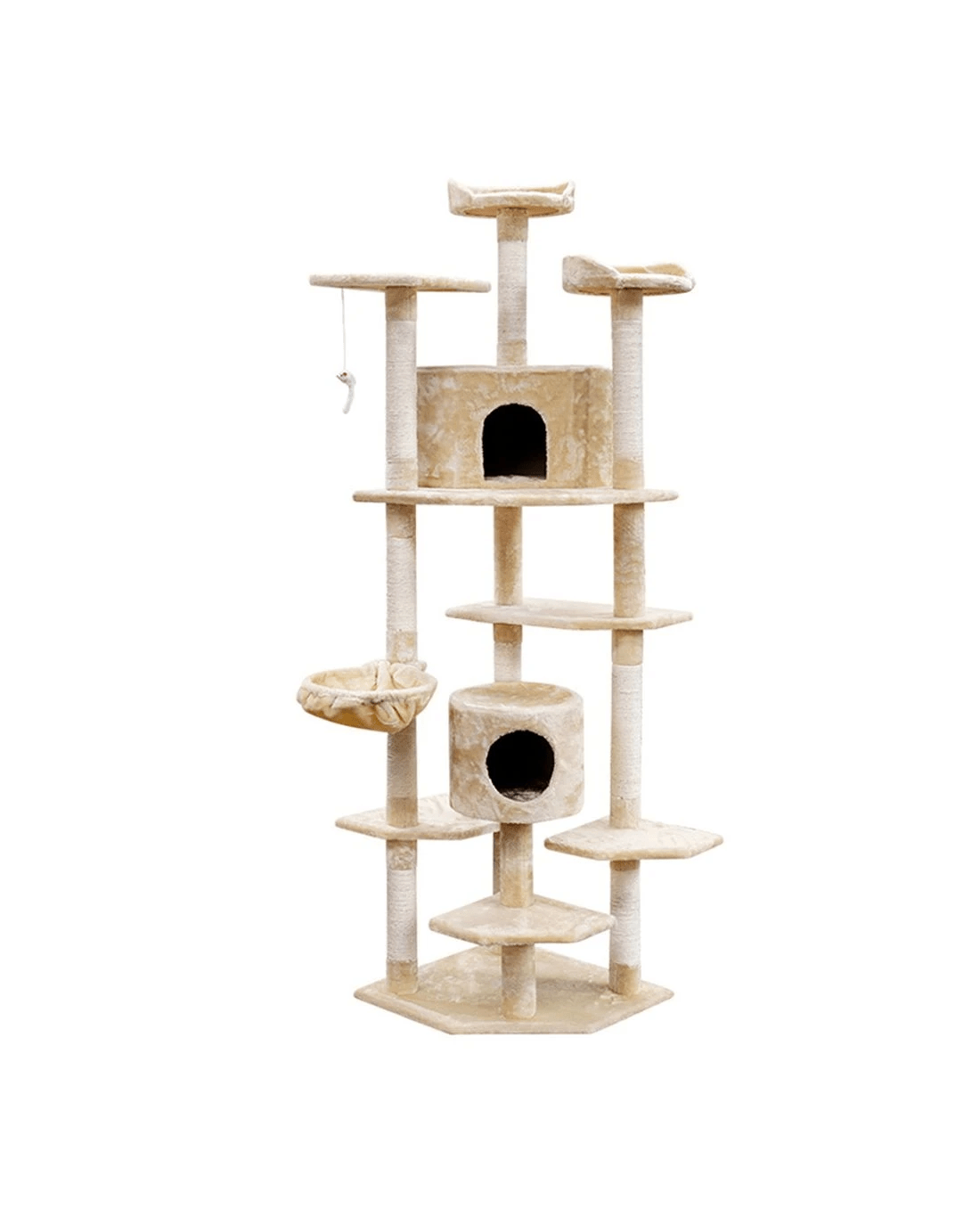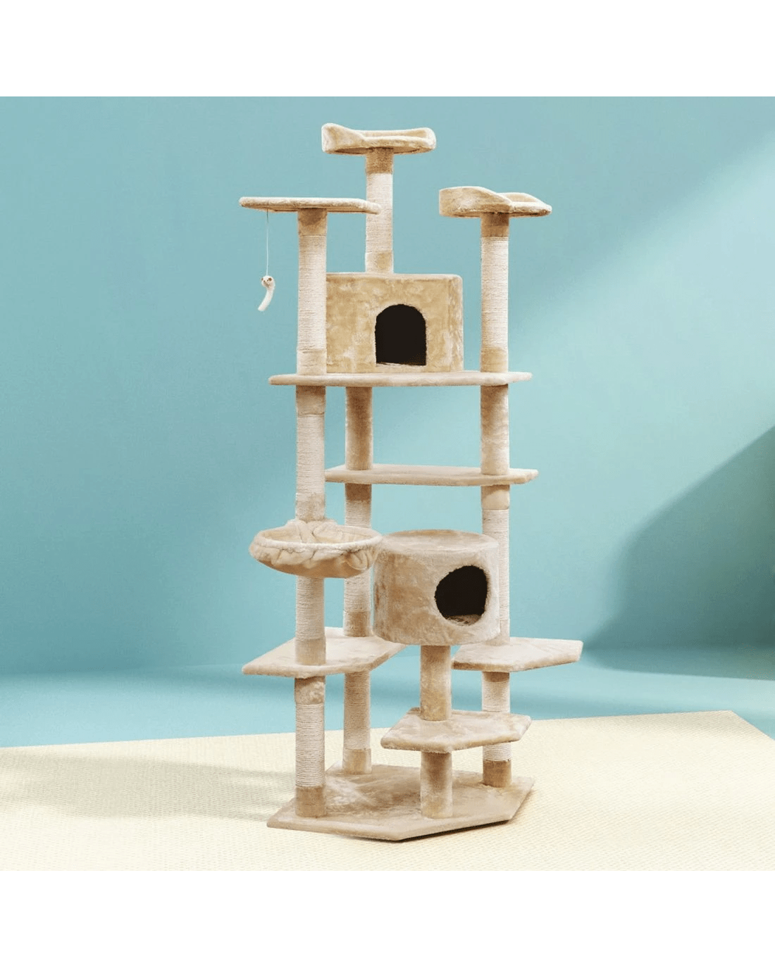 Sold by Aisle Sixi.Pet Cat Tree 203cm Tower Scratching Post Scratcher Condo Trees House Bed - Beige