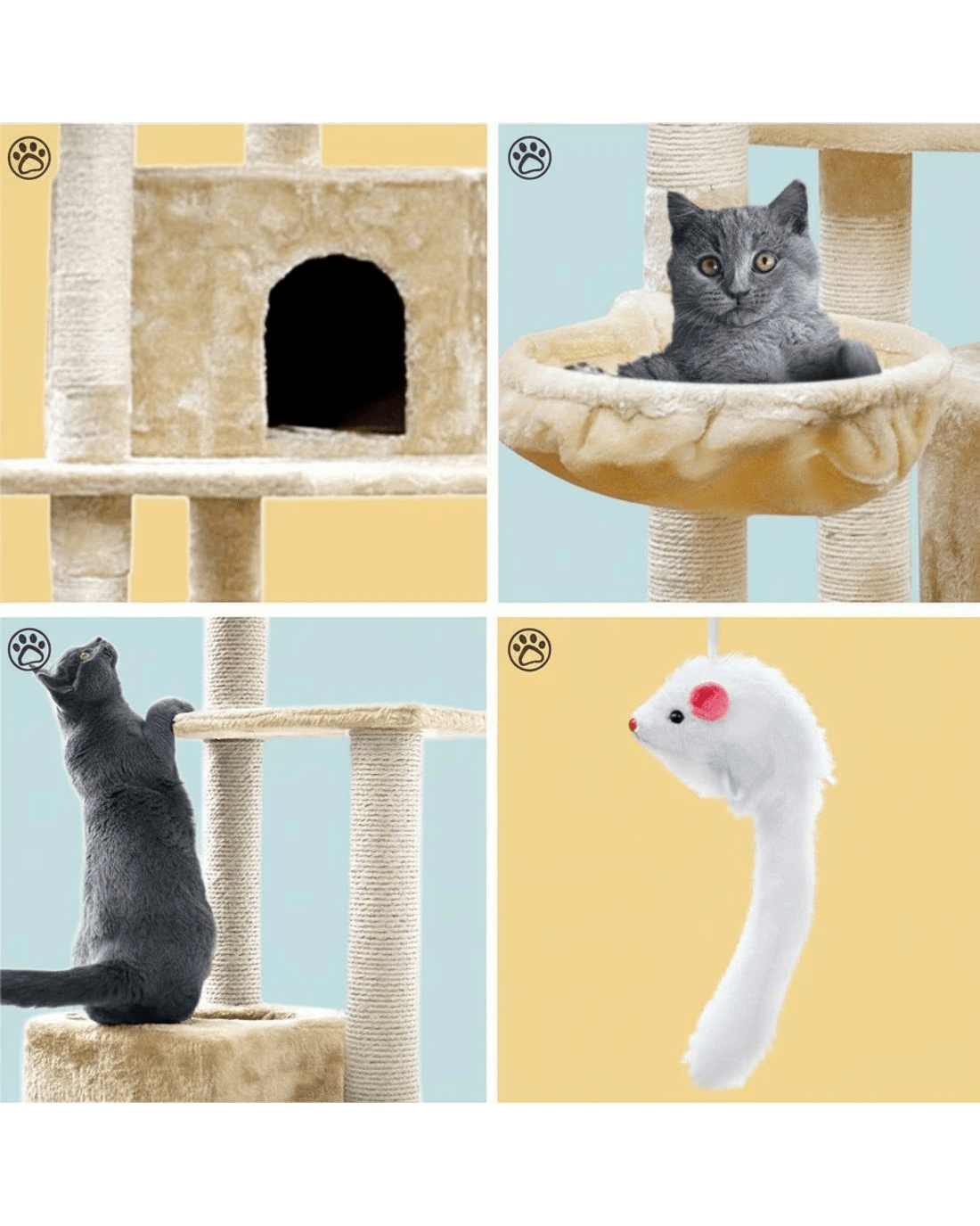 Discover the purr-fect playground for your feline friend with our i.Pet Cat Tree, meticulously crafted for durability and elegance. This tree features a cosy sleeping hammock and comfortable perches for relaxation. It also includes sisal scratching pillars and a hanging mouse, offering endless hours of play and rest. More than just a cat tree, it is a haven where your beloved feline can play, rest, and reign supreme. A delightful addition for both cats and their humans!