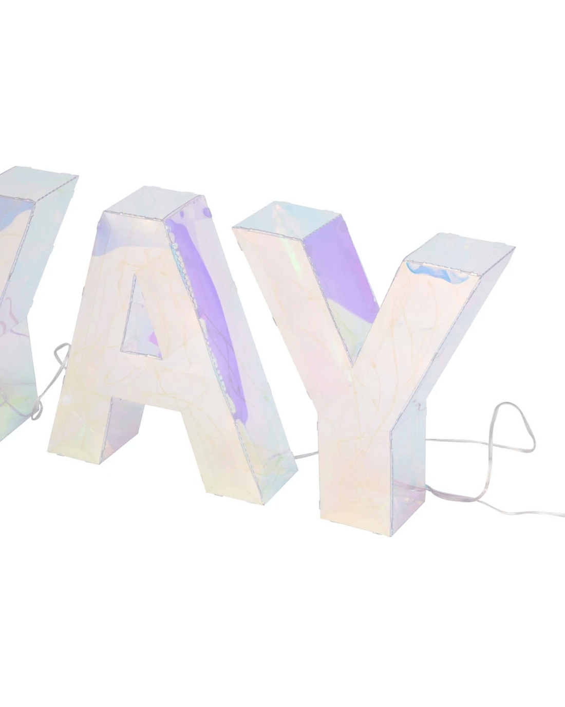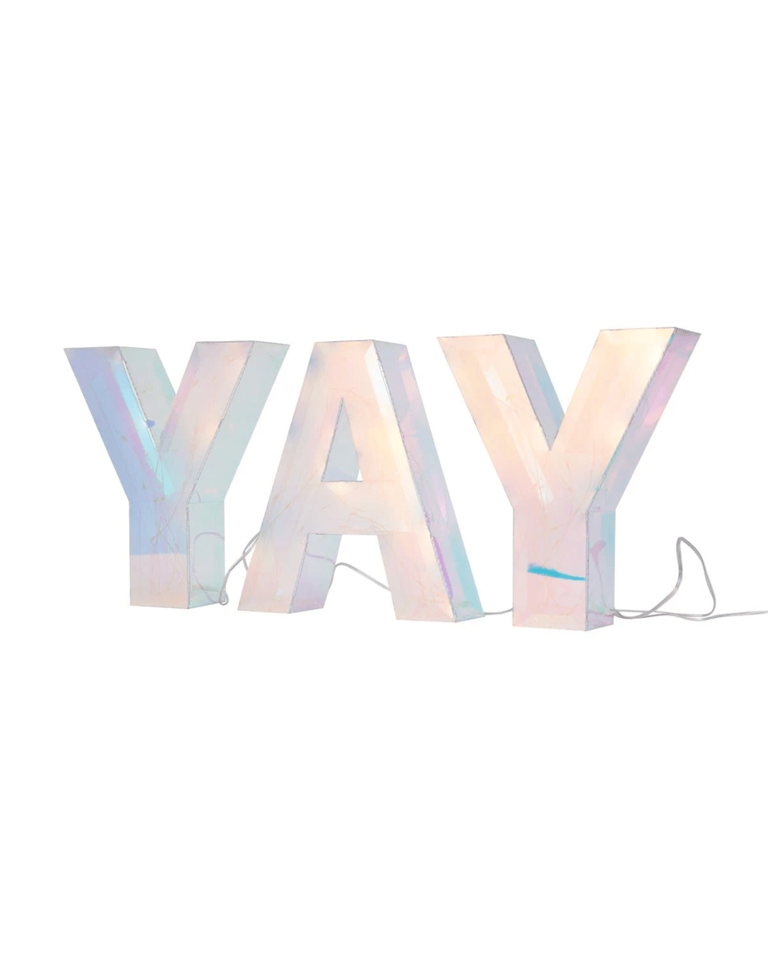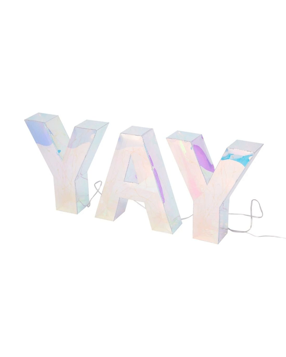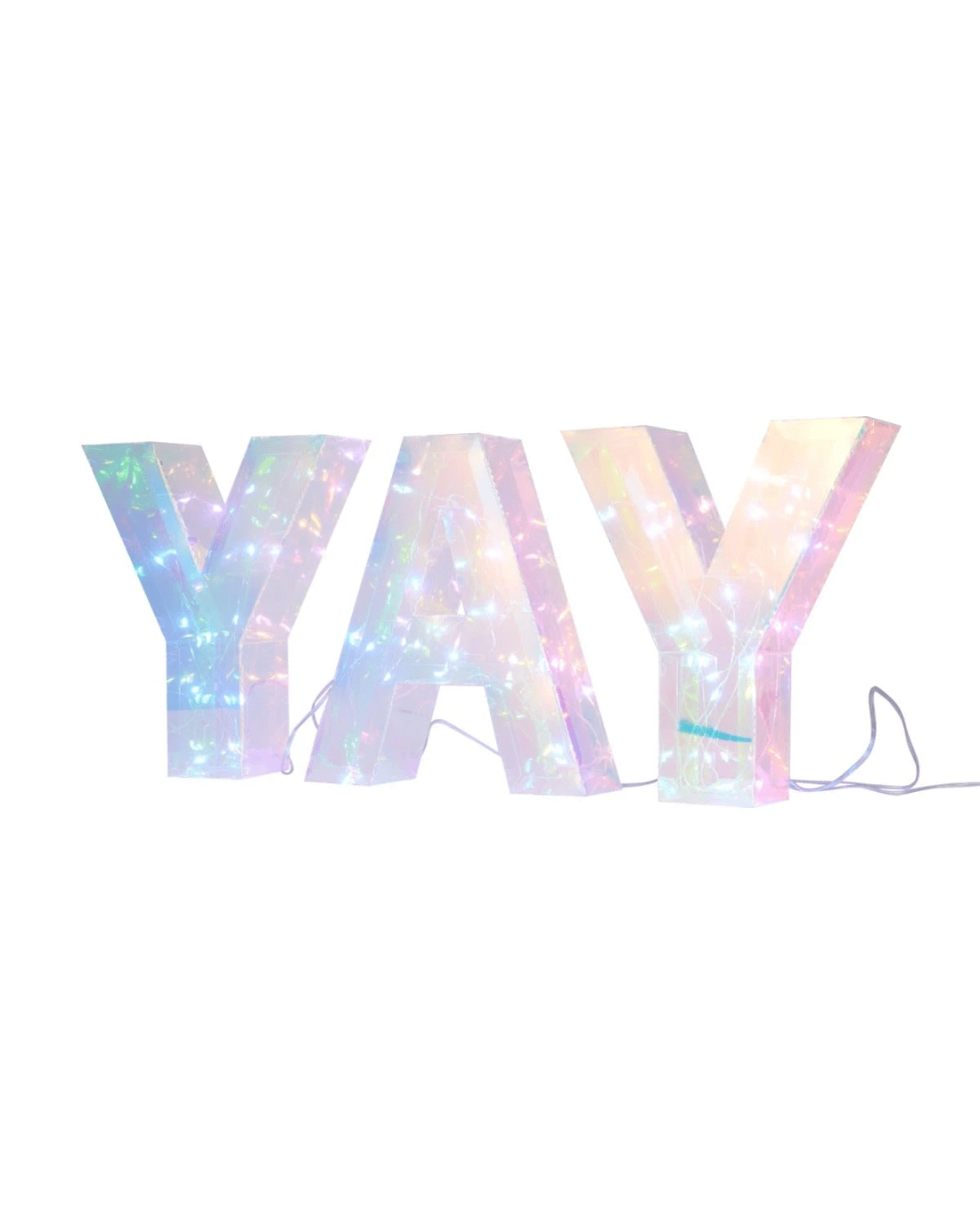 This Iridescent YAY Lights is perfect for seasonal decorations, parties or creating a warm, inviting atmosphere year-round.