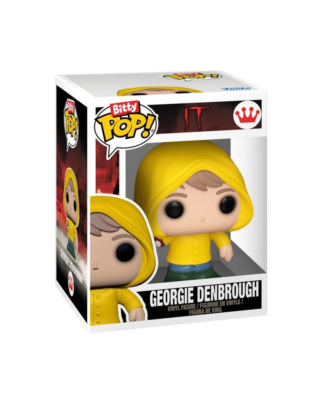 The world of POP! is getting bigger - and smaller - with Bitty POP! collectibles! Expand your IT collection with the Bitty POP! Bitty Box Pennywise's Lair! This hard acrylic display case is modeled to resemble a POP! box and opens to reveal iconic rooms from around Pennywise's Lair. This collectible also includes Bitty POP! Pennywise and Bitty POP! Georgie Denbrough! Mix and match with more of your favorite Bitty POP! figures with this Bitty Box collectible! Bitty POP! figures are packaged in hard acrylic display cases with detachable bottom lids. The detachable bottom lids double as acrylic bases, to which the Bitty POP! figures are adhered. Collectible Bitty Box is approximately 6.25" H x 4.7" W x 3.5" D when closed and approximately 6.25" H x 9.05" W x 1.85" D when opened. Vinyl figures are approximately 0.9-inches tall. Ages: 3+