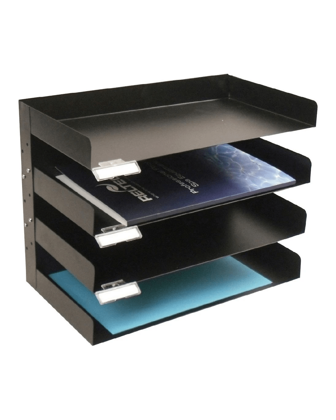 This Italplast Metal 4 Tier Desk Tray is a great place to store your files and documents of up to foolscap size. This tray has rubber feet so that it won't scratch surfaces and to prevent it from slipping around. This tray also comes with identification tabs so that you can label and organise your filing system in your own unique way.