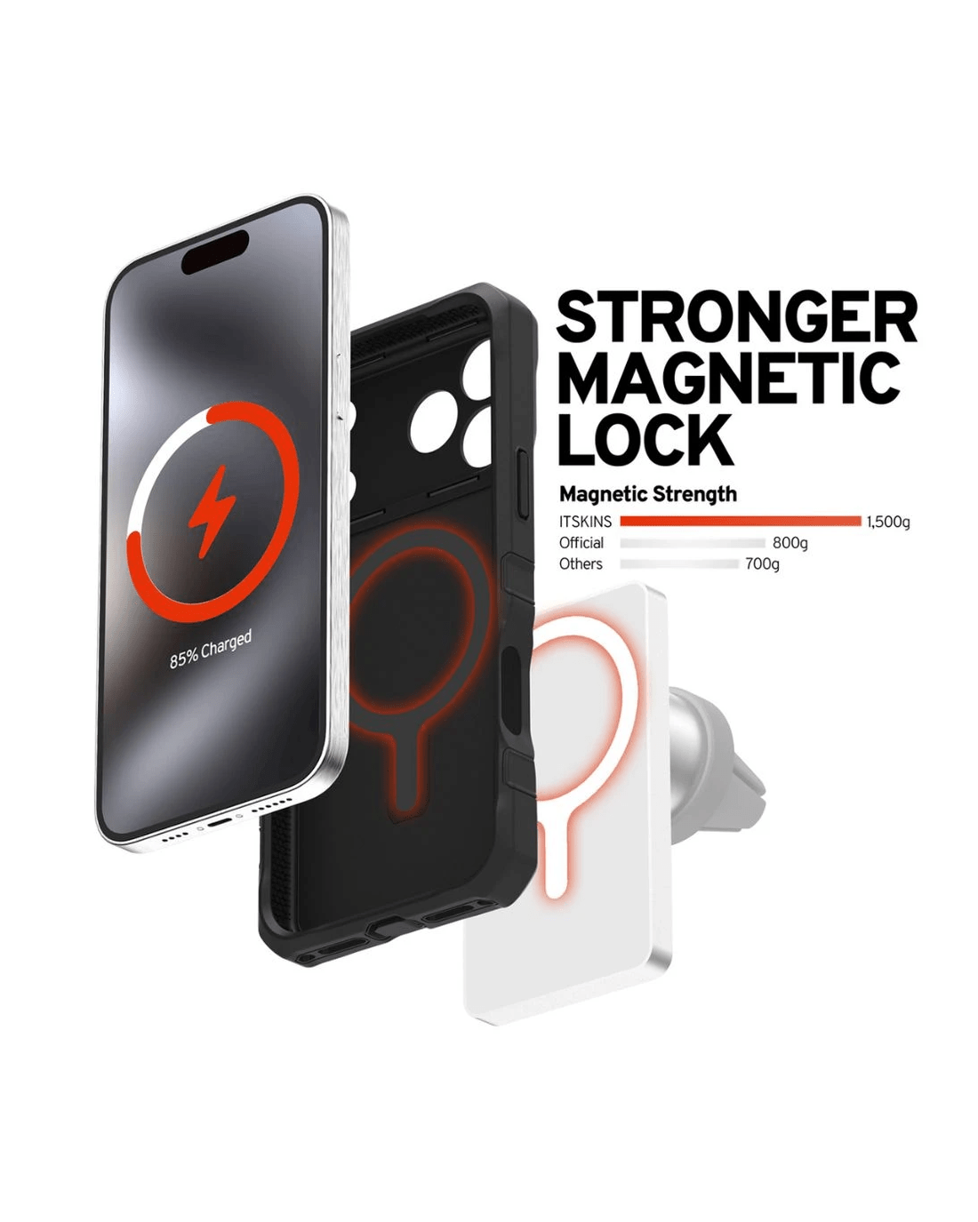 The Itskins Supreme R Case offers rugged protection for your device with drop resistance up to 5 metres. Featuring an alumnium camera ring, tactile alumnium buttons, and a built-in MagSafe-compatible stand, it’s designed for durability and convenience.
