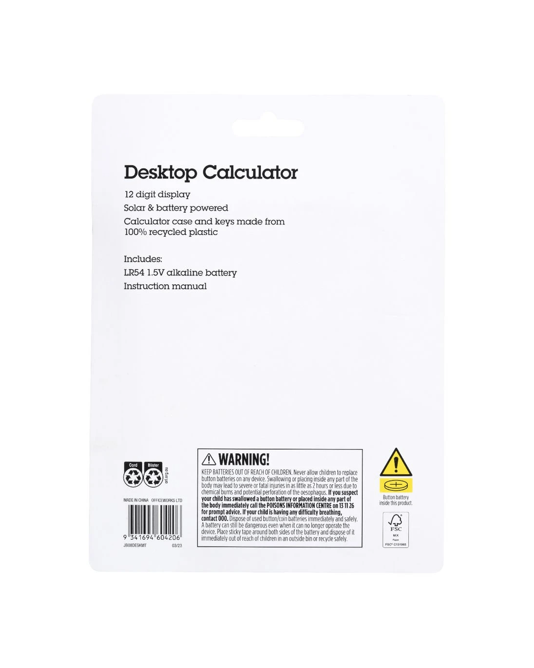 Sold by OfficeworksJ.Burrows 12 Digit Desktop Calculator Mint