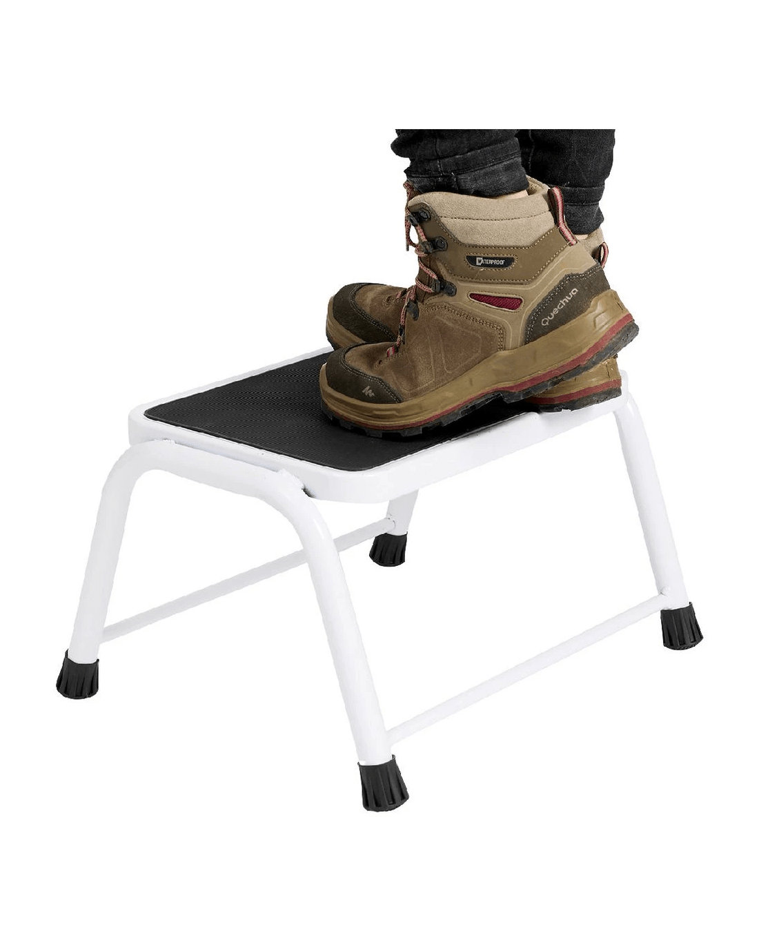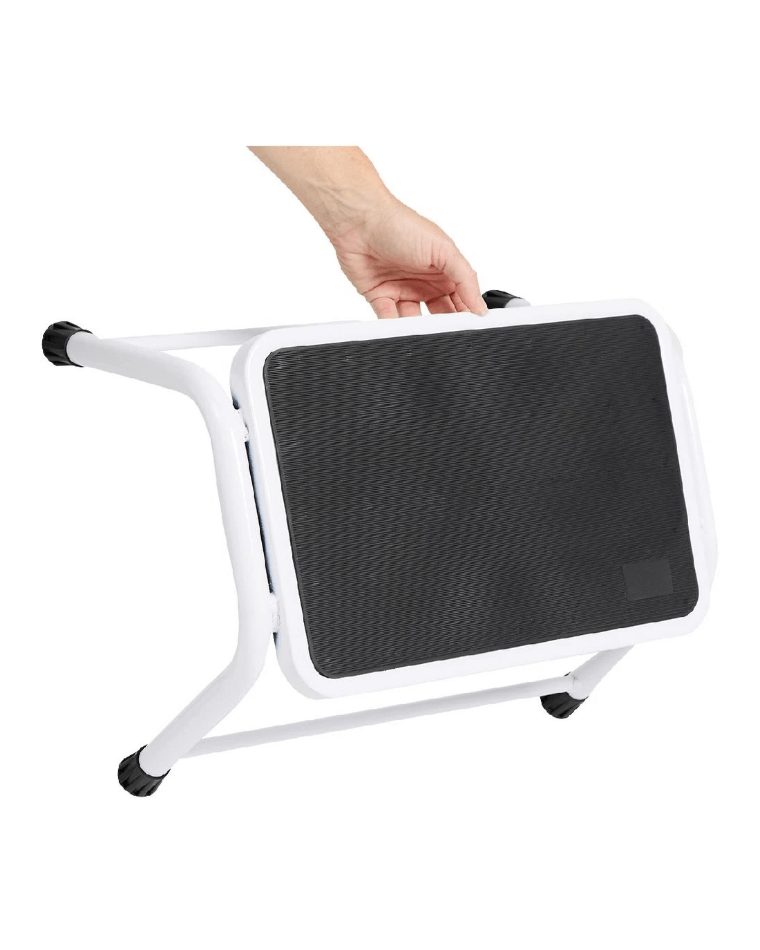 - Its non-slip surface and rubber feet help to keep the step securely in place.