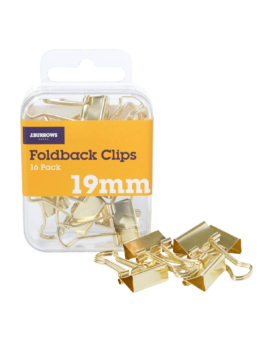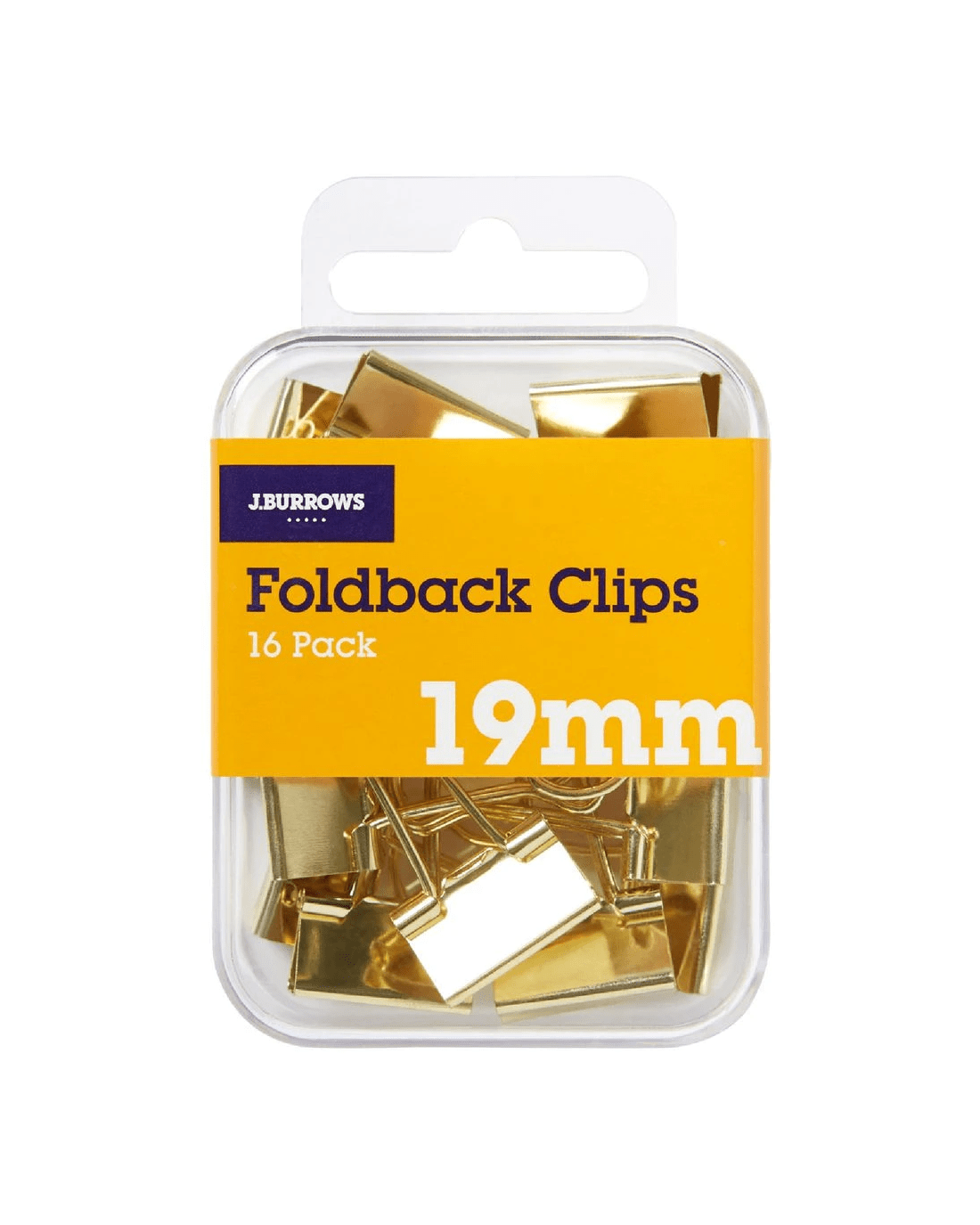 J.Burrows 19mm Foldback Clips Gold 16 Pack