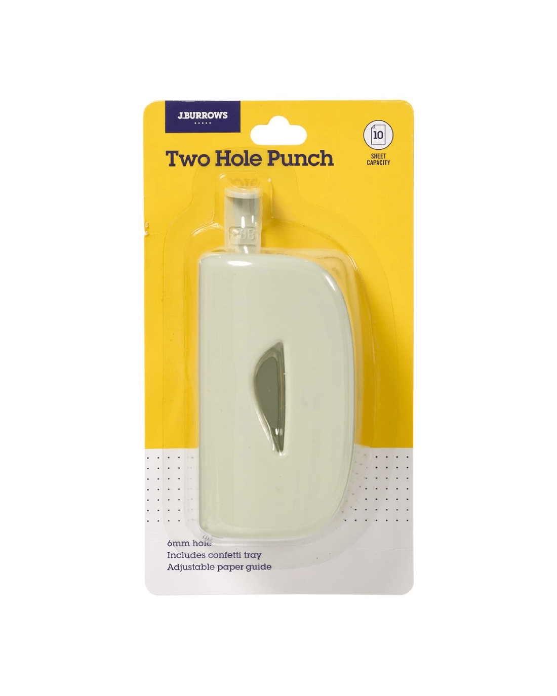 This J.Burrows 2 Hole Punch is ideal for preparing documents and papers for binding. It can punch holes in up to 10 sheets of paper at a time. Its lightweight and compact design makes it a convenient option for working on the go.