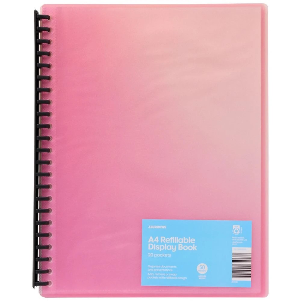 J.Burrows 20 Pocket Refillable Display Book Pink