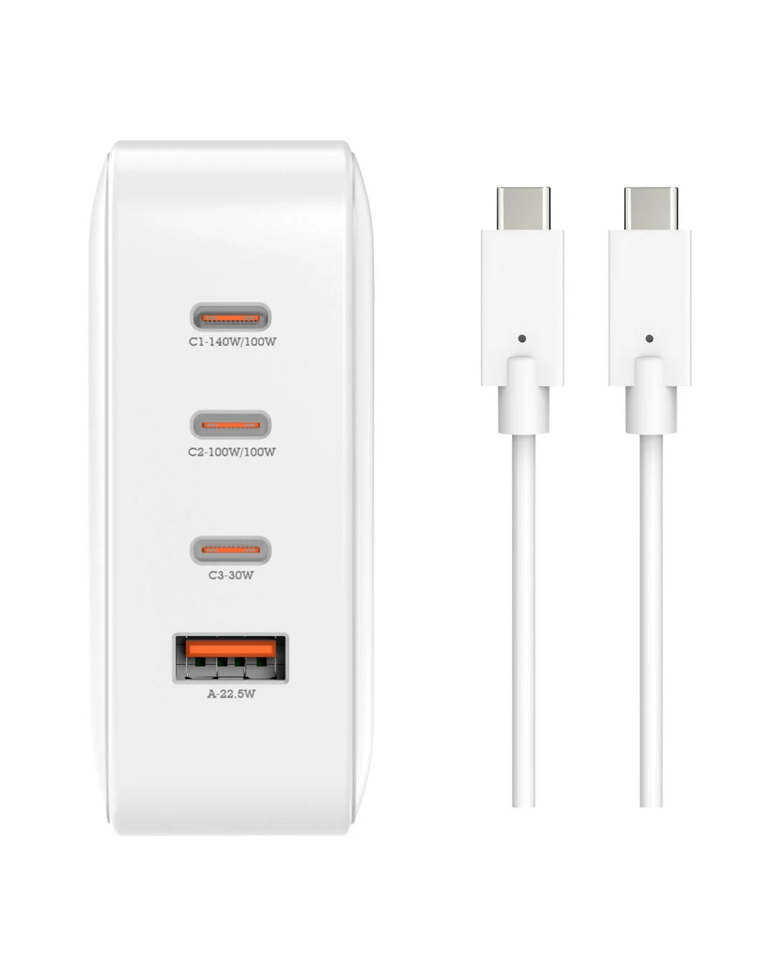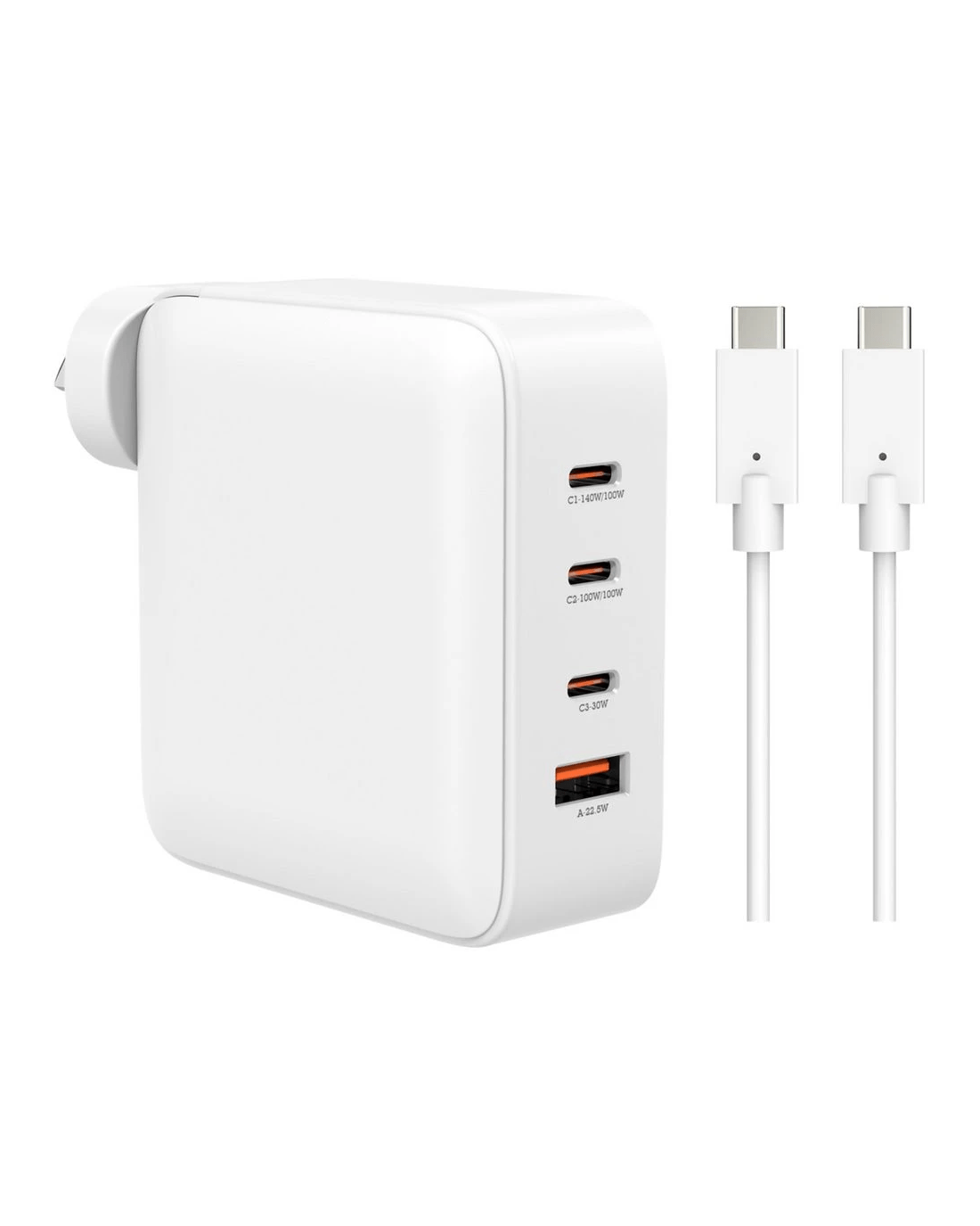 - This charger has 3 x USB-C ports and 1 x USB-A port.