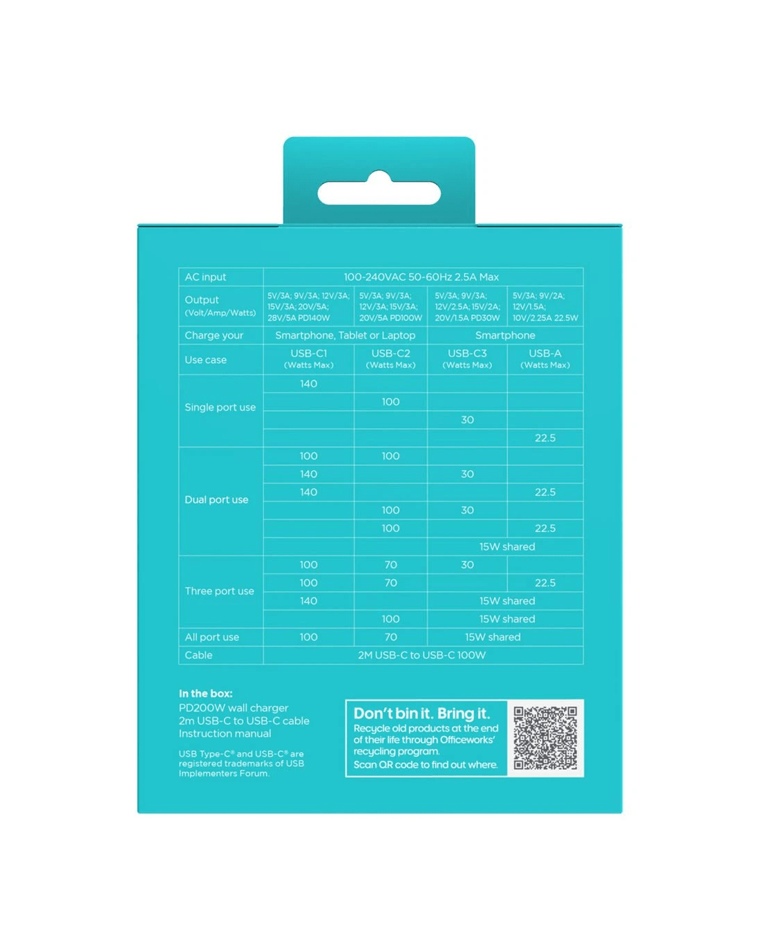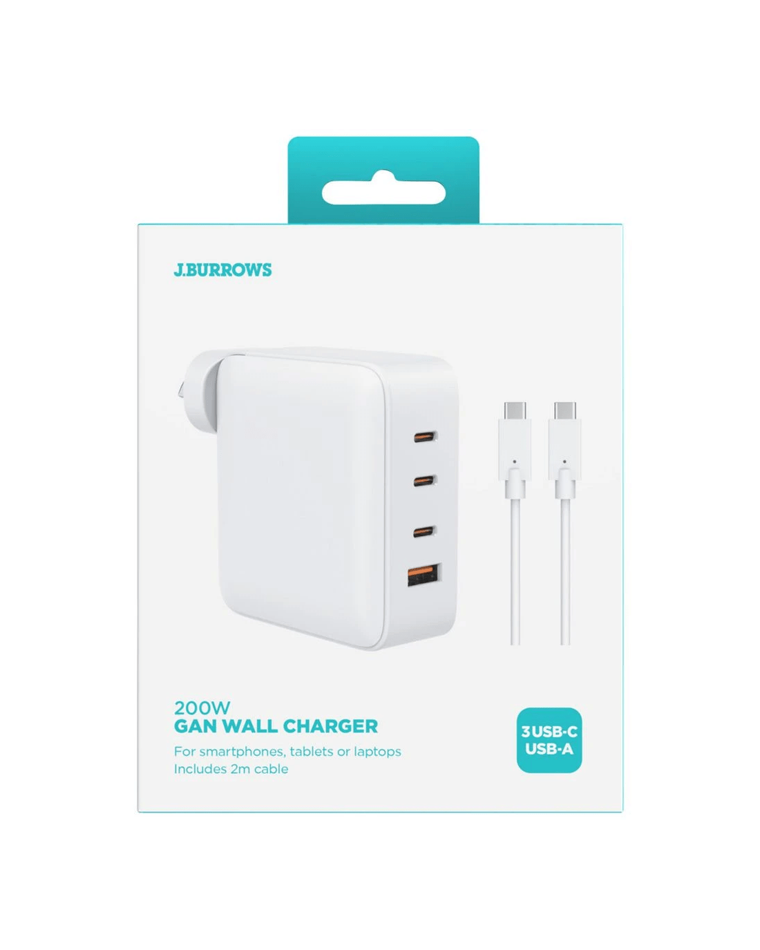 Sold by OfficeworksJ.Burrows 200W GaN 4 Port USB-C/A Wall Charger