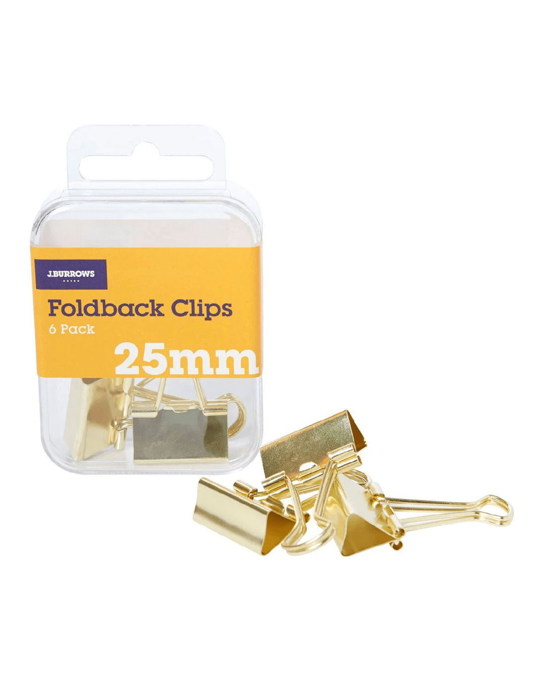 Sold by OfficeworksJ.Burrows 25mm Foldback Clips Gold 6 Pack