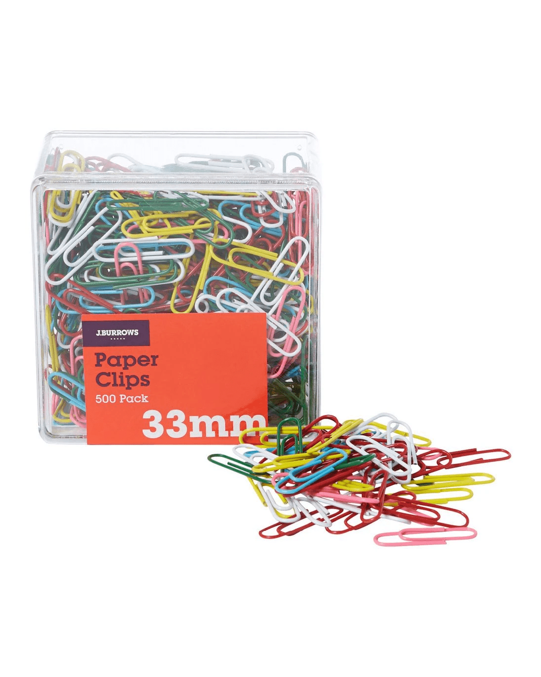 Sold by OfficeworksJ.Burrows 33mm Paper Clips Assorted 500 Pack