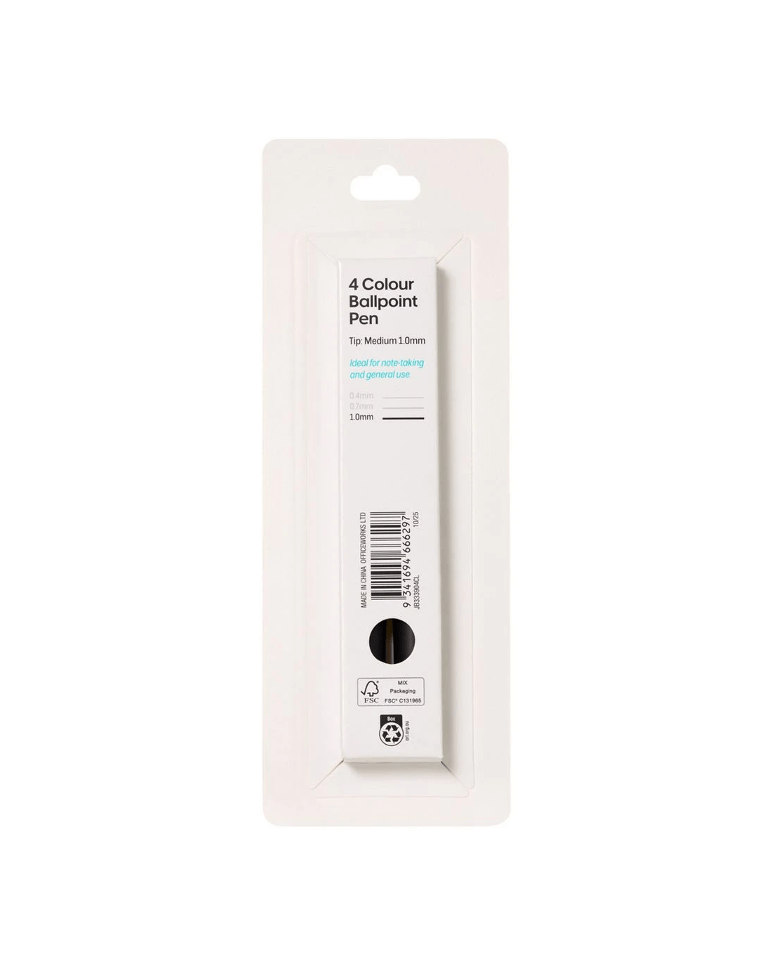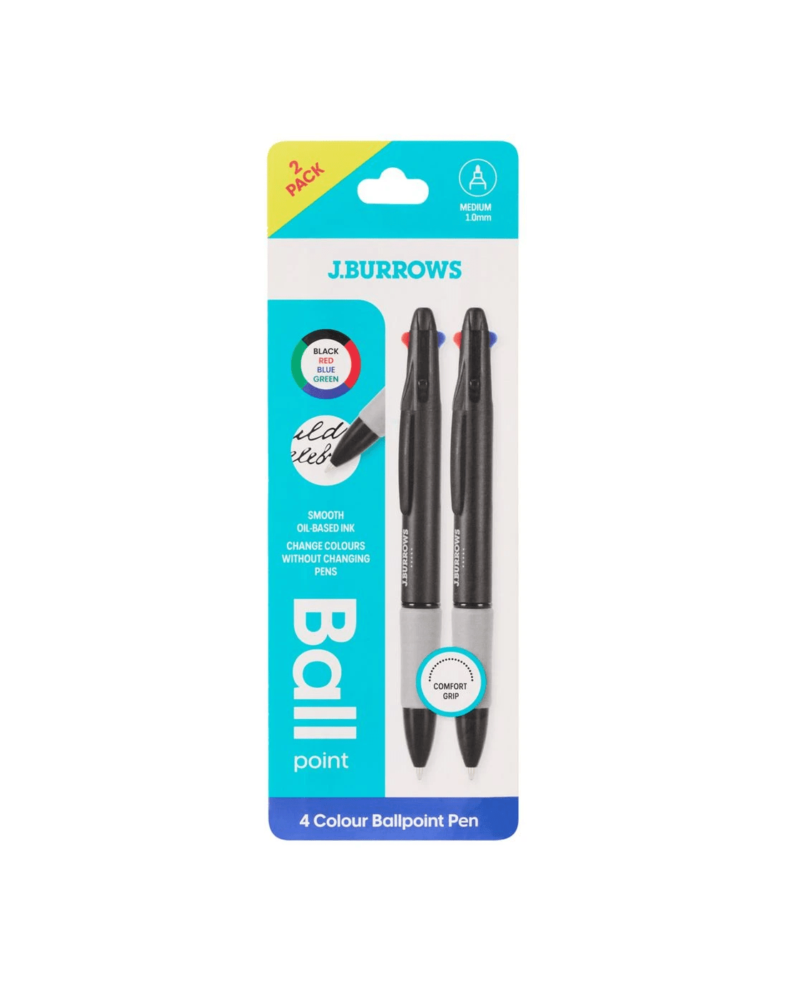 J.Burrows 4 Colour Ballpoint Pen 1.0mm 2 Pack