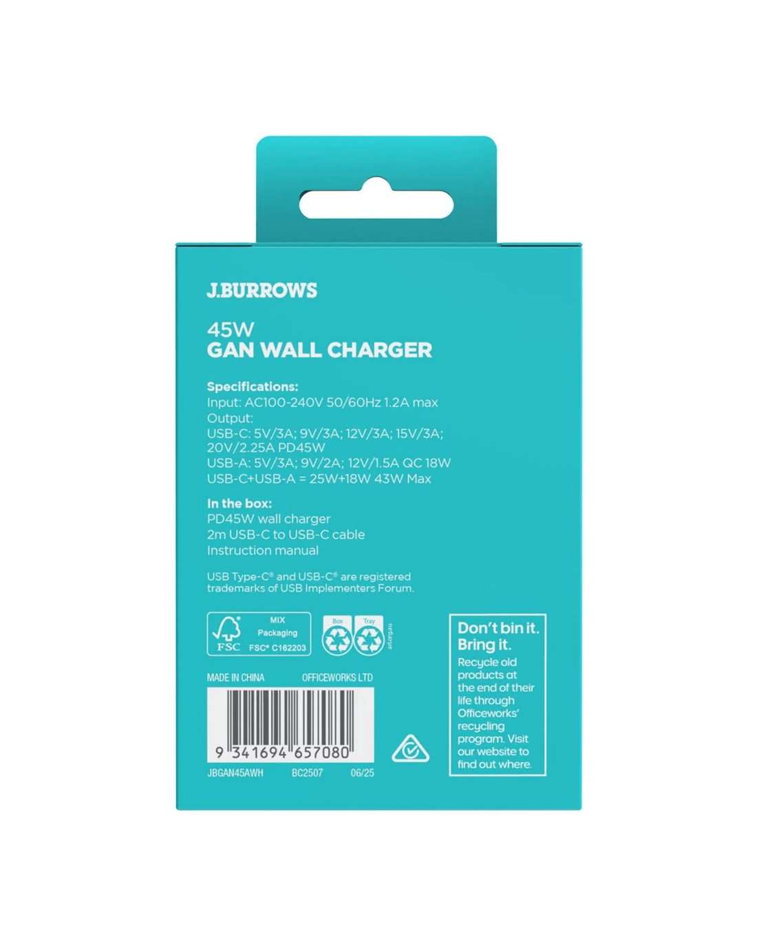 Sold by OfficeworksJ.Burrows 45W GaN Dual USB-C/A Wall Charger