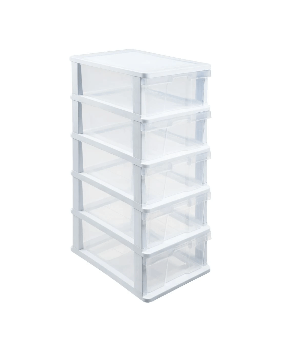 - This storage tower comes with 5 drawers that can be completely pulled out.