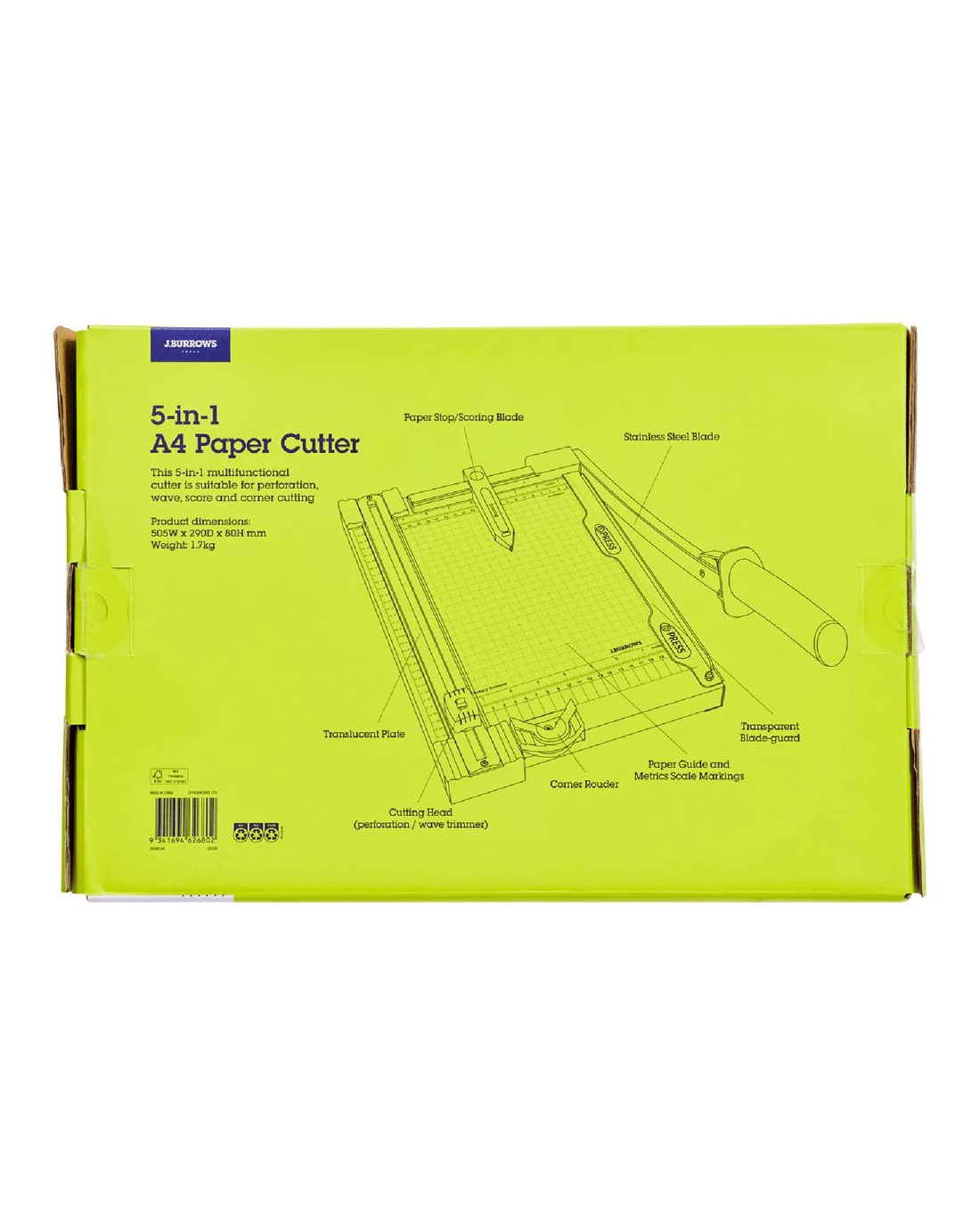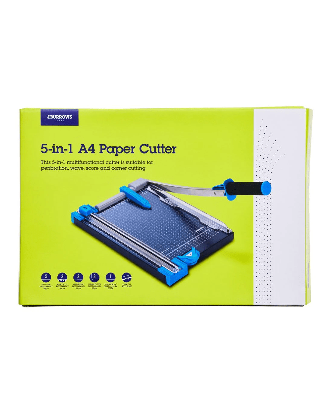 This J.Burrows 5-in-1 A4 Paper Cutter is the perfect companion, whether it's for work or a creative crafternoon. Featuring a 5-in-1 design, you can choose to use it as a guillotine, a wave cutter, a perforator, a scorer or a corner cutter. It suitable for cutting up to 5 sheets of A4 80 gsm paper at once, making it a convenient option for use at home, craft room or workspace.