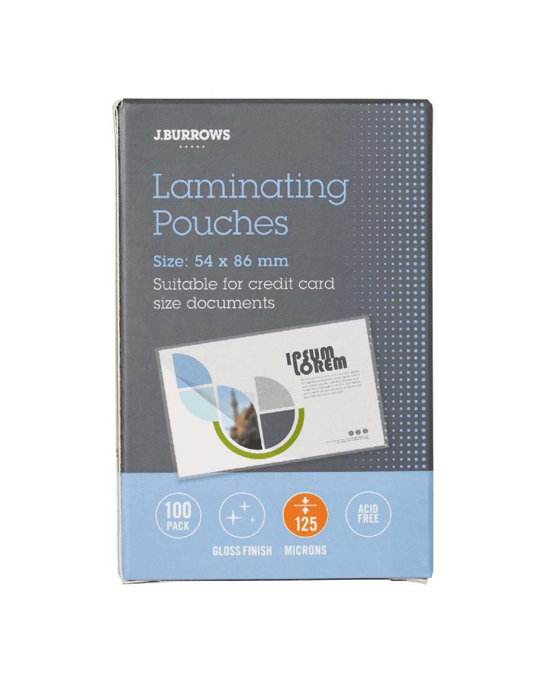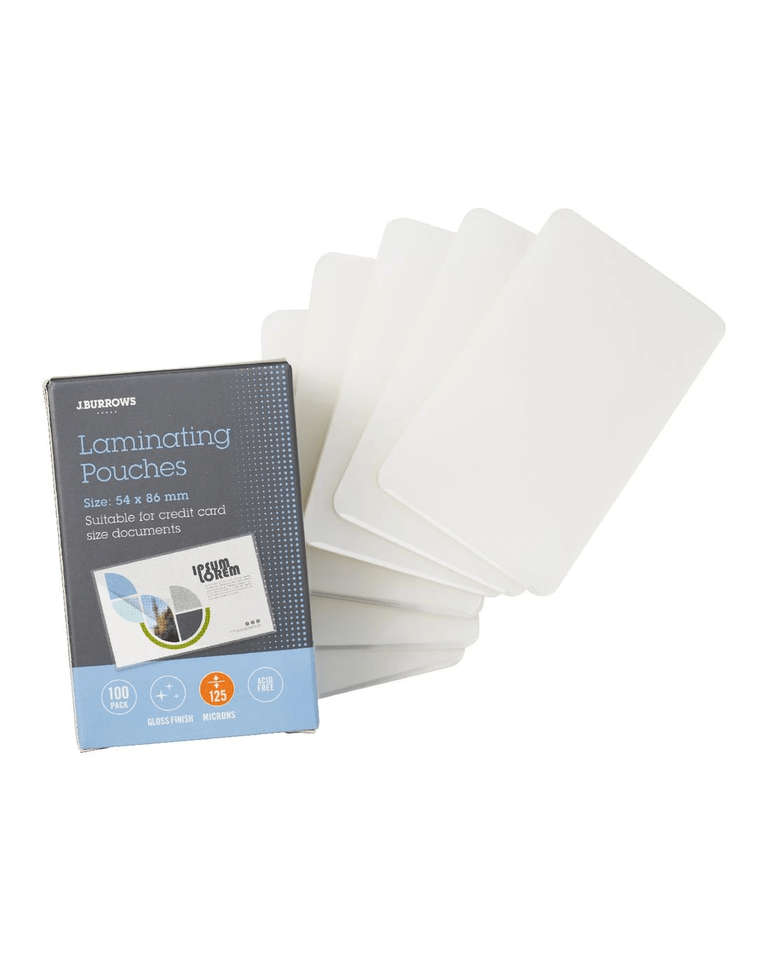 Sold by OfficeworksJ.Burrows 54x86mm Laminating Pouches 125 Micron 100 Pack